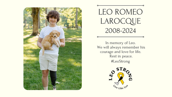 This GoFundMe has been created to support the Larocque family after the devastating loss of their oldest son, Leo. Funds raised will help the family pay off remaining medical debts and also help cover the costs of planning a much-deserved celebration of life for their 15-year-old son, Leo.