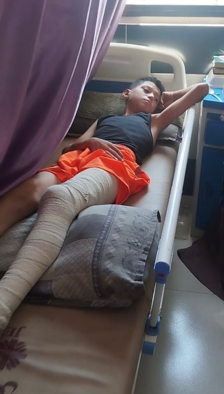 Malgré les conditions catastrophiques à Gaza et la forte pression sur les hôpitaux, il a pu subir une première opération chirurgicale. Les informations médicales disponibles indiquent que sa blessure à la jambe est complexe et sévère, impliquant des dommages aux os ainsi qu’aux tissus environnants. Cela a nécessité une intervention chirurgicale urgente. Cependant, il a encore besoin en urgence d’une deuxième opération afin de stabiliser correctement les os, éviter de graves complications telles que des infections ou une invalidité permanente, et augmenter ses chances de remarcher à l’avenir.