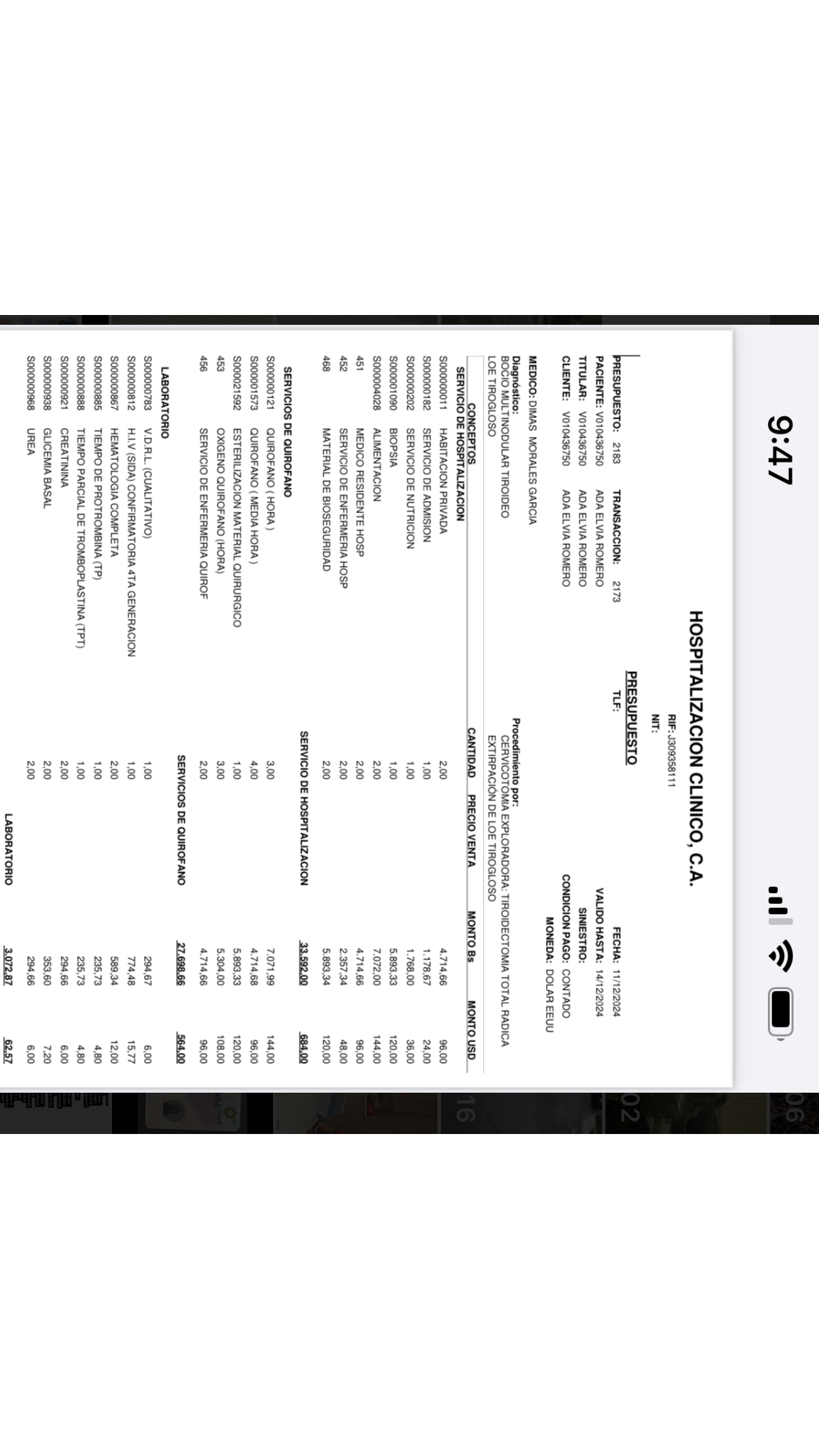Aquí tengo el presupuesto de la cirugía.