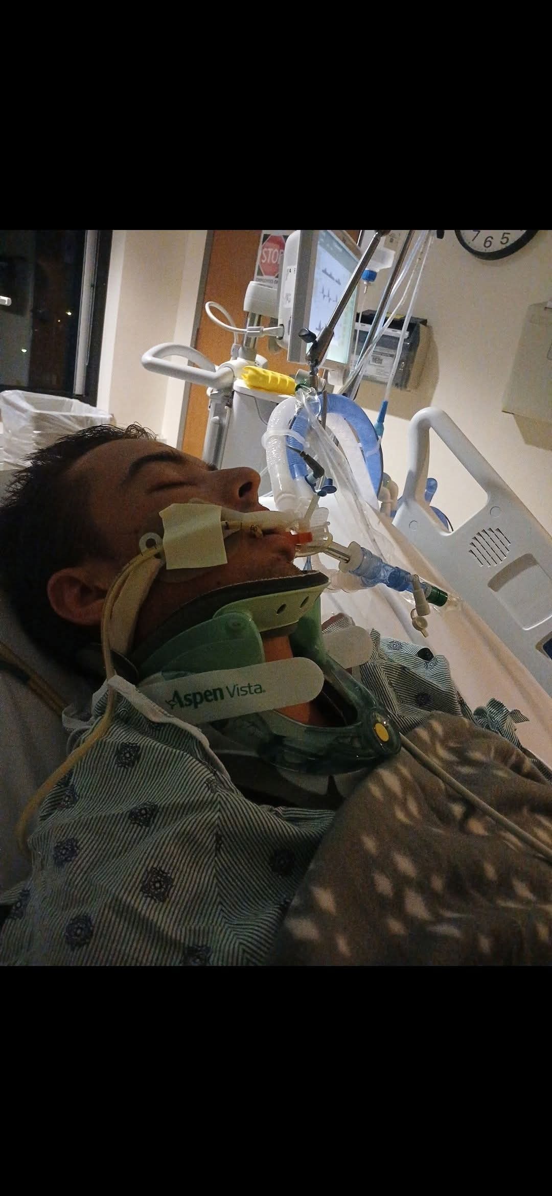On August 22, Friday afternoon, Daniel fell off a roof he was working on and hit his head and shoulder. He was unconscious and rushed to the hospital in an ambulance. The first rib under the collarbone is fractured and there is a small puncture in one lung. But the head injury caused bleeding on the brain and he is still unconscious now, Wednesday, August 27th. The mother of this very special young man is a single mom and can't afford to take off work but can't bear to go to work either because Daniel is much more calm when he senses that she is with him. The nurses even say that it's easier to handle him when she is there. His body begins to thrash around, taking several nurses to control him.