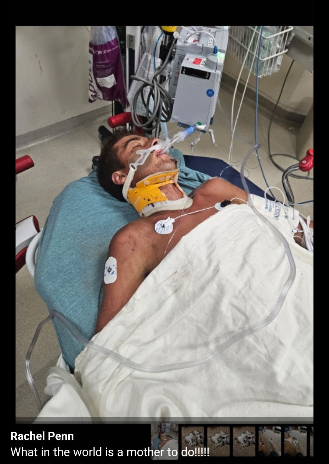 So the mother, Rachel (a fellow massage therapist), although she tried to go back to work through this pain and fear, collapsing at work, knew she needed to stand by her baby's bedside. They need each other now more than ever.