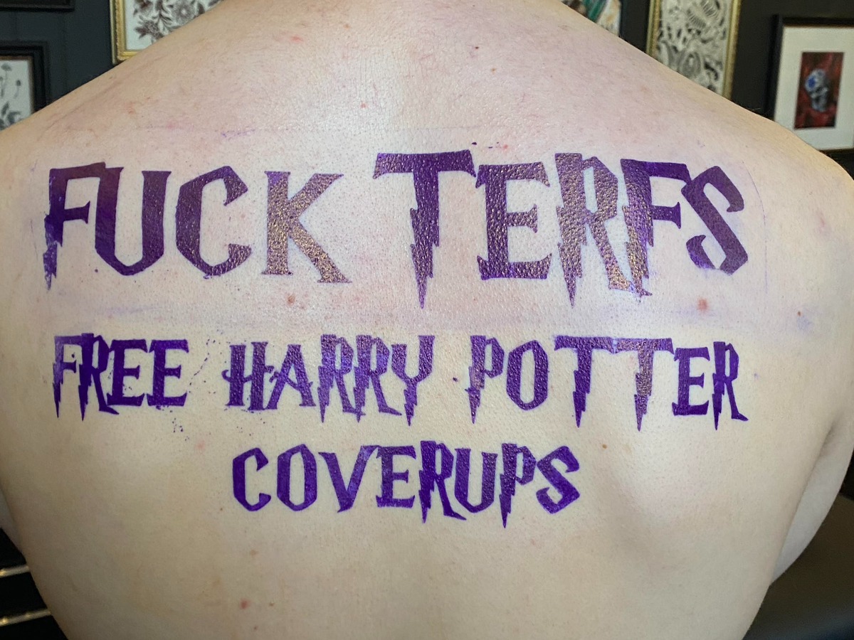 I wish to raise money and awareness through my platform by offering free cover ups of Harry Potter tattoos, a franchise which has become tainted for many queer people by Rowlings' blatant and aggressive transphobia. A fact that has strongly been brought into the harsh light of reality with JK Rowling funding the ruling herself. This is a free project however i'm asking people to donate here instead of tipping me, to raise money for Trans Pride Brighton. A satisfying way to use Rowlings' influence against her