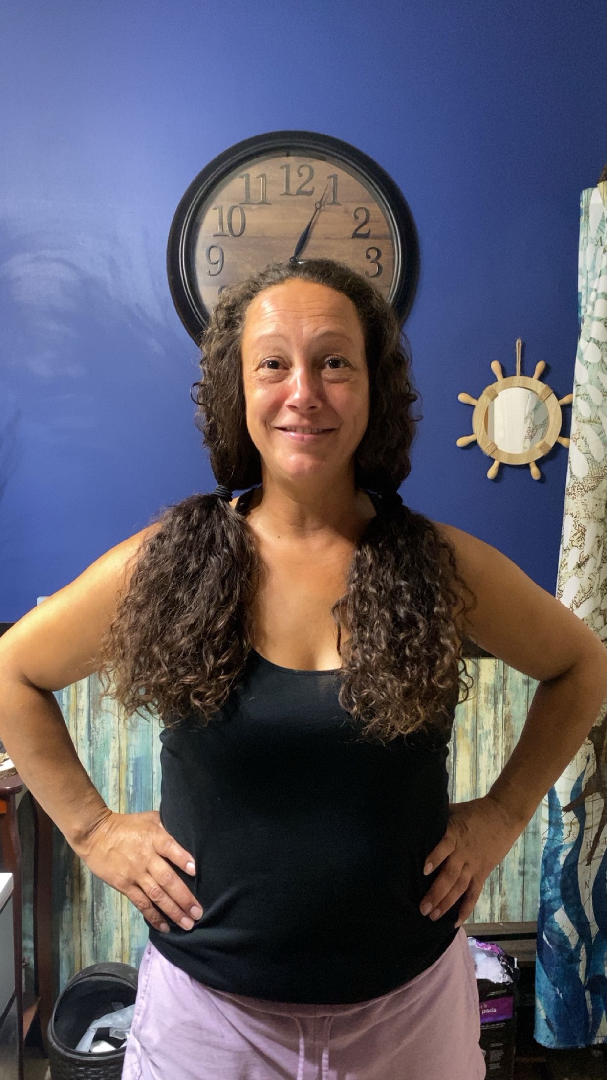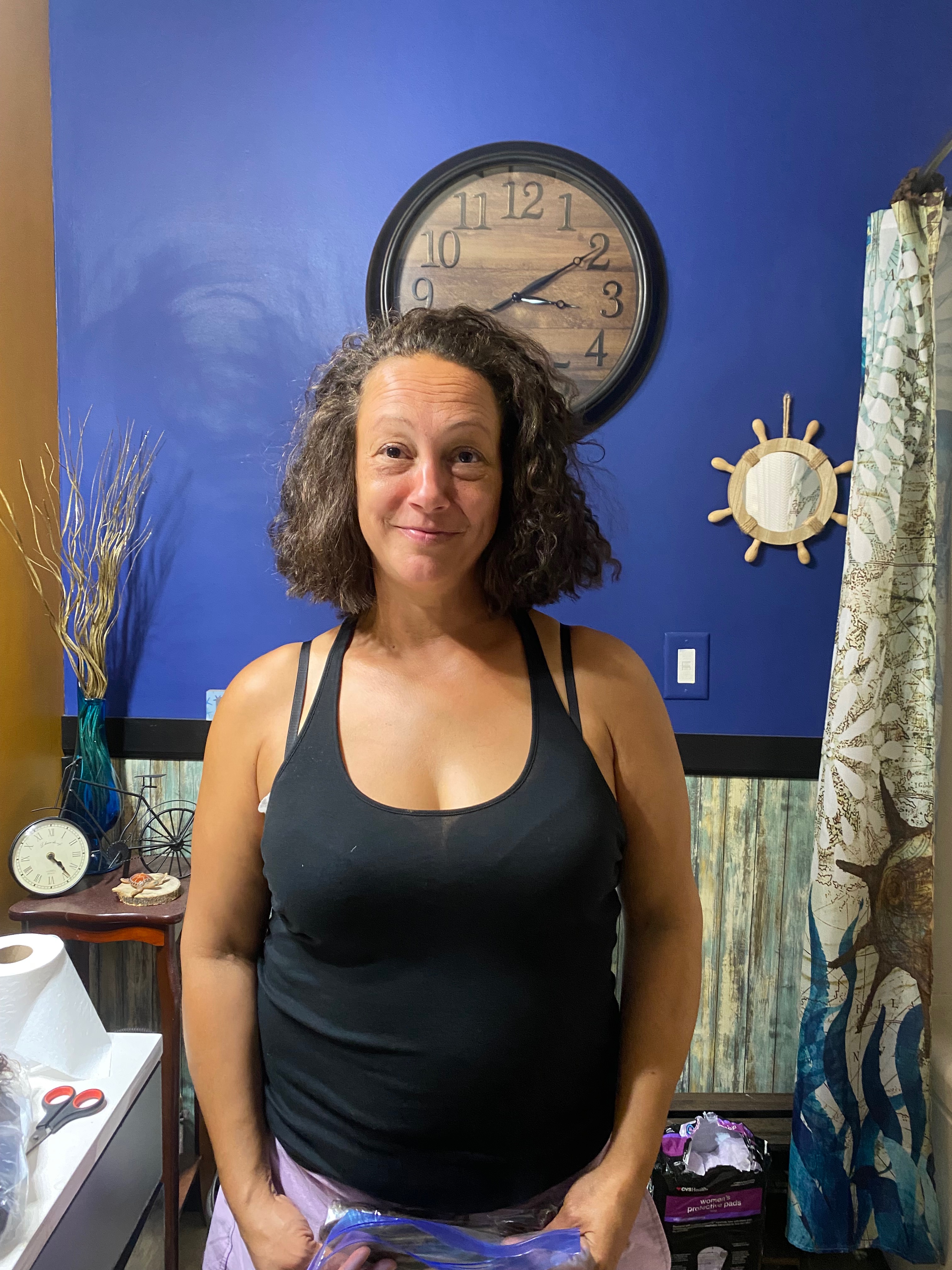 Lisa’s first month of chemotherapy has been a rollercoaster of a ride. The first thing Lisa was worried about was her hair, of course. I would be too if I had long curly hair like hers. She asked me to cut it one morning to try and save as much of it as she could. And that’s what we did; we took off around 9 inches that day. But sadly, chemo was not kind to her beautiful hair; it has already started to take away that once thick and precious hair. I will not lie, it is very heartbreaking to see her without her luscious curly hair. I never could have imagined having longer hair than my mother in a million years. I’d like to preserve the images of her having that once long and desirable curly hair, so that is what I used for her GoFundMe.