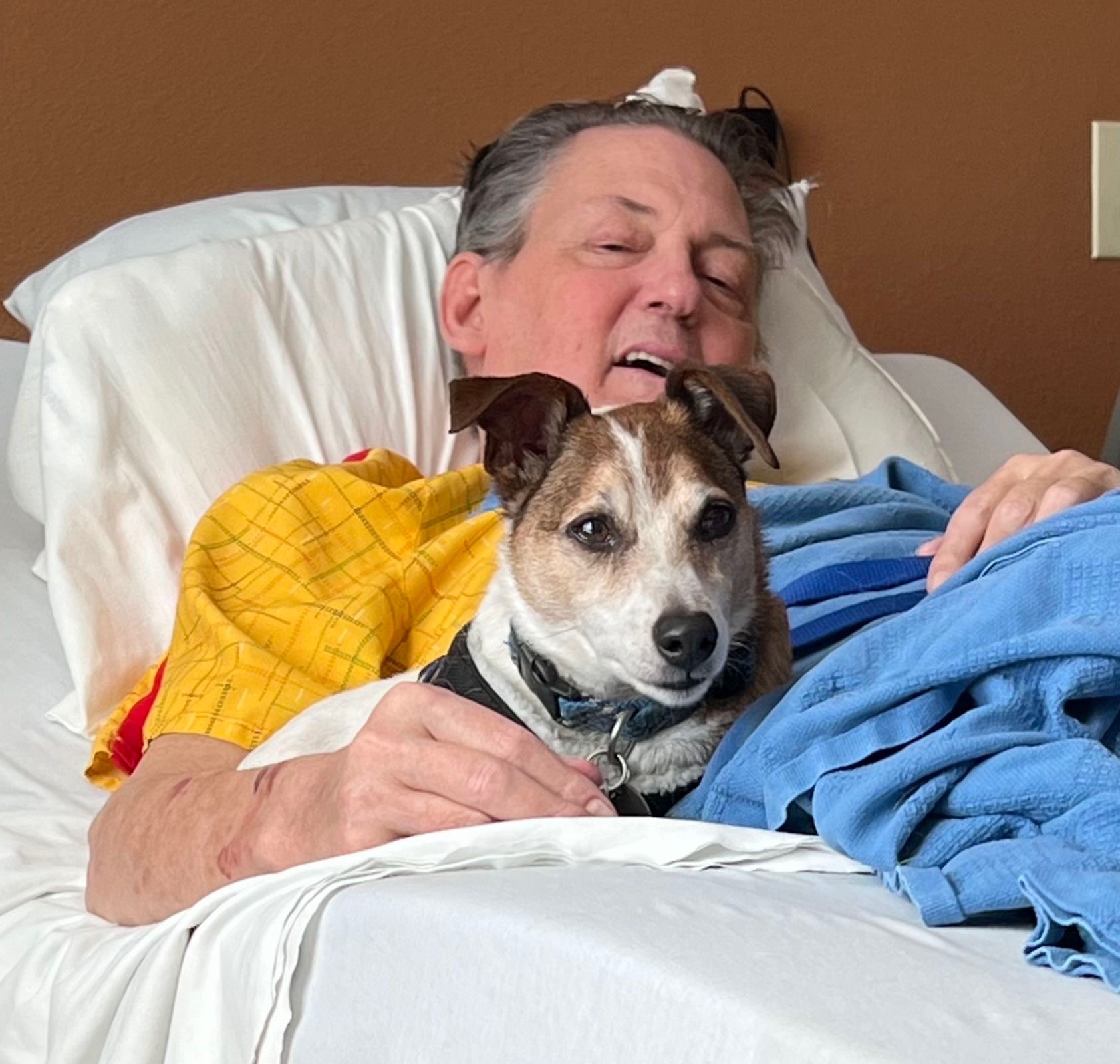 Within the last three months, Tom’s recovery took a heartbreaking turn. An accident completely out of his control landed him back in the hospital with 3 broken vertebrae and in rehab, compounding the challenges he was already facing. It’s been a grueling and emotional journey for him, made even harder by being unable to work and provide for himself. What’s been especially painful is that he’s had to endure all of this without the constant comfort of his beloved dog, Michael, who has always been his faithful companion.