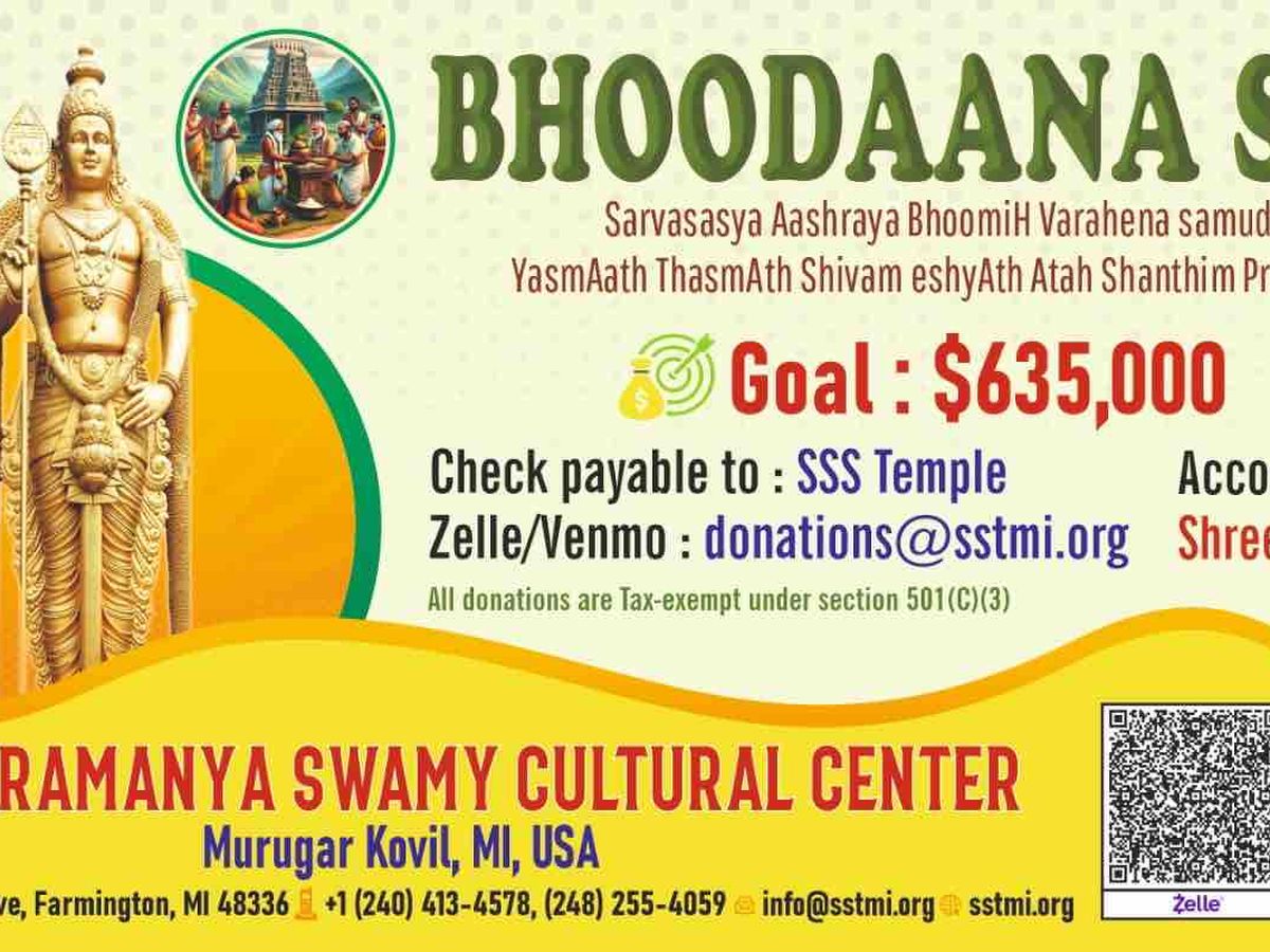 • November 2023: The journey of Sri Subramanya Swamy Temple Balaalayam in Michigan began humbly in a small home in Farmington, MI.