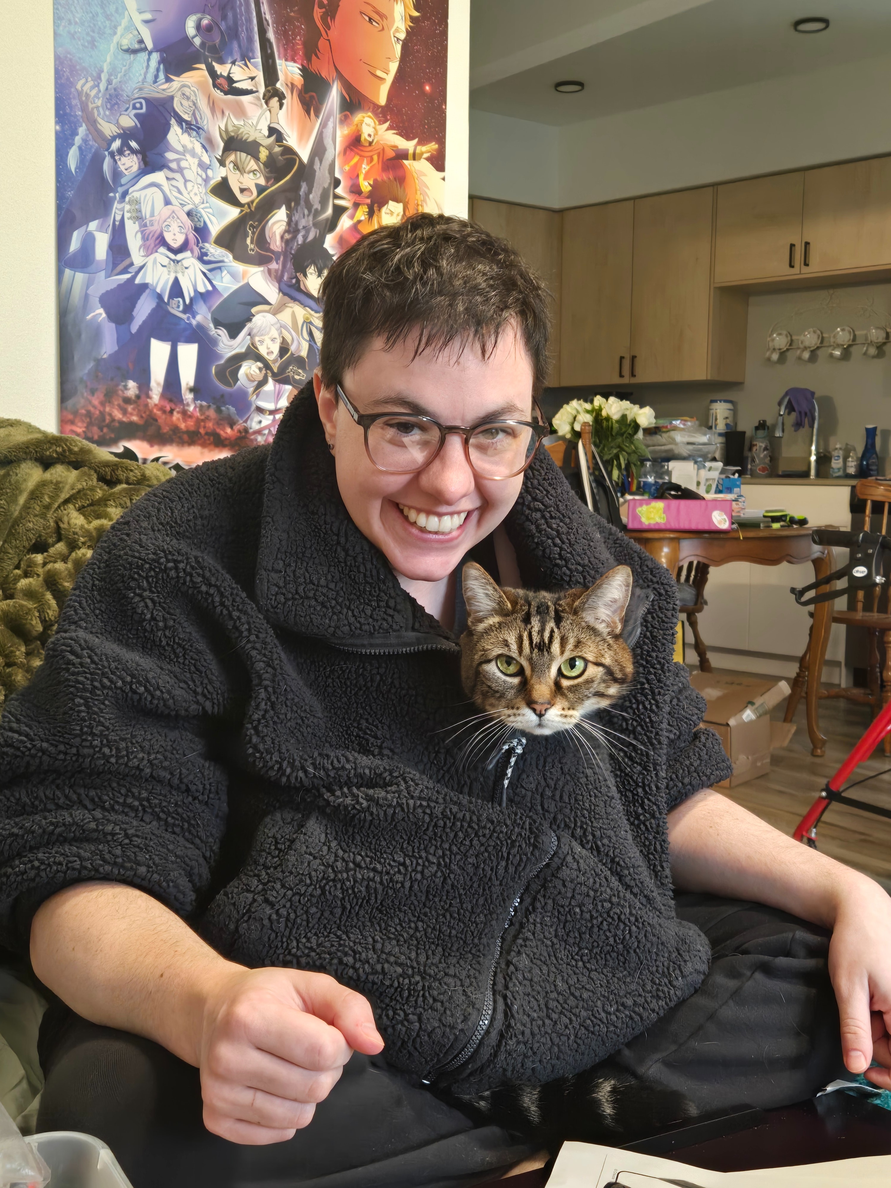 If you can't help monetarily, I am always down for a meal or some company as I recover. Any extra funds will pay for wet food for my #1 support cat, Pribs.