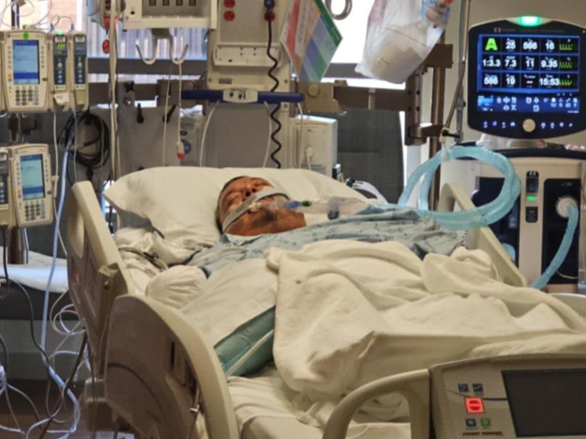 On February 23, 2025 he was hospitalized and put on a ventilator. He had large blood vessels in his esophagus that burst causing him to throw up massive amounts of blood. At the hospital he received three blood transfusions. He was intubated immediately and placed on a ventilator for three days. An emergent endoscopy and the some of the varices were banded. He was then transported to another hospital where he remained in ICU for the week.