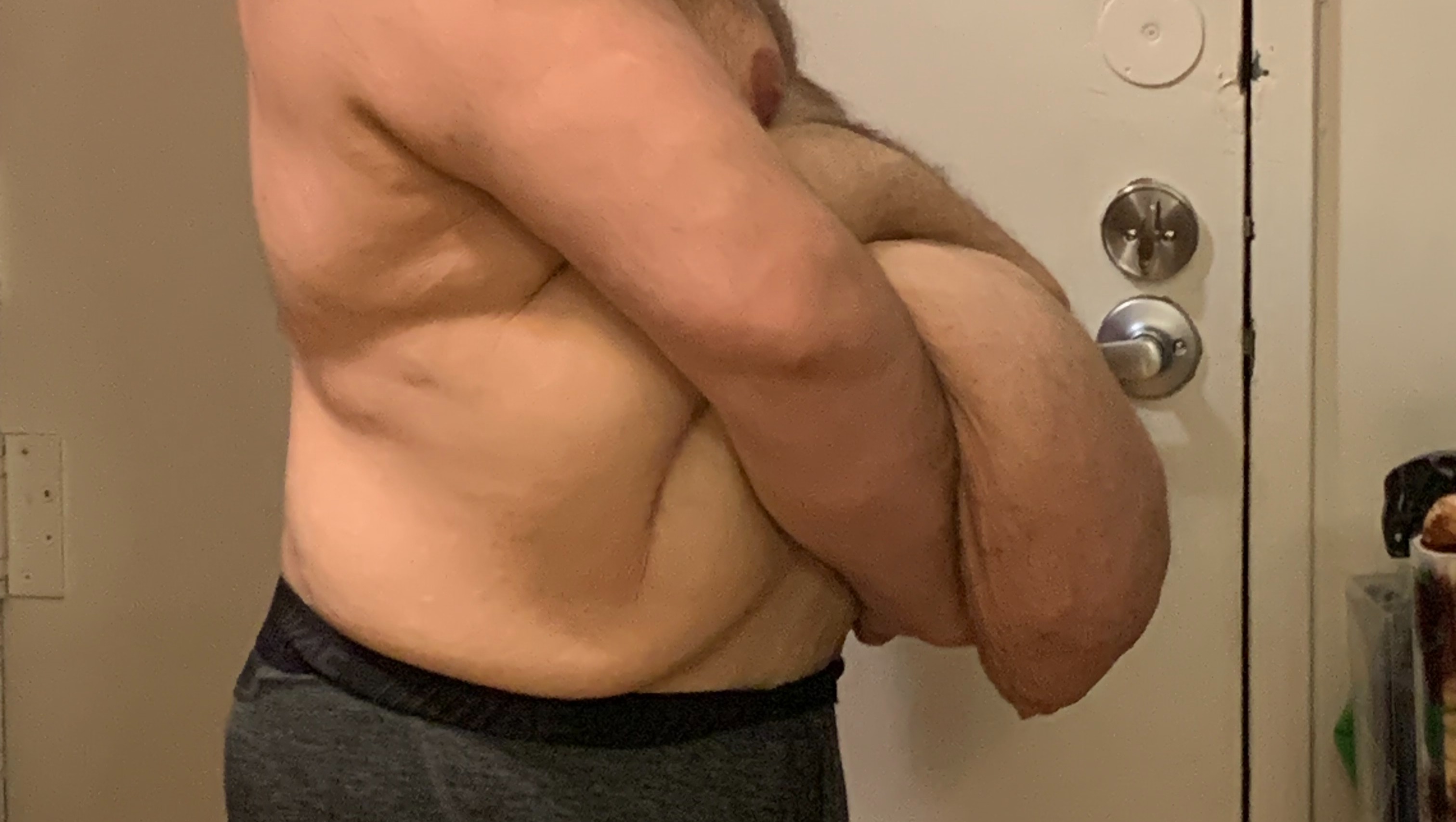 *A shot of the hanging skin I need removed. I have lost more weight since the photo above was taken, but it is still a challenge to live with each day.