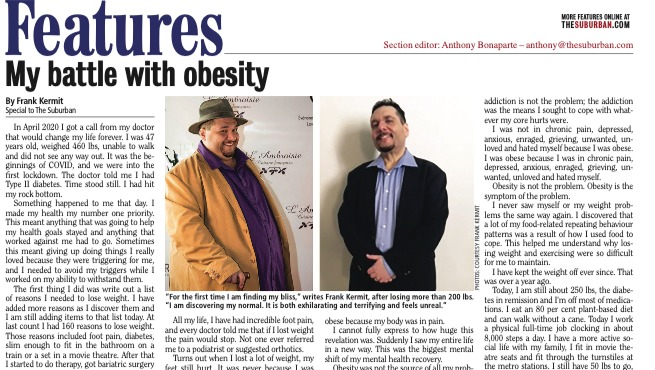 *This photo is of an article I wrote for The Suburban Newspaper about my battle with obesity. Check out the link to my Obese Recovery Online Journal to read it.