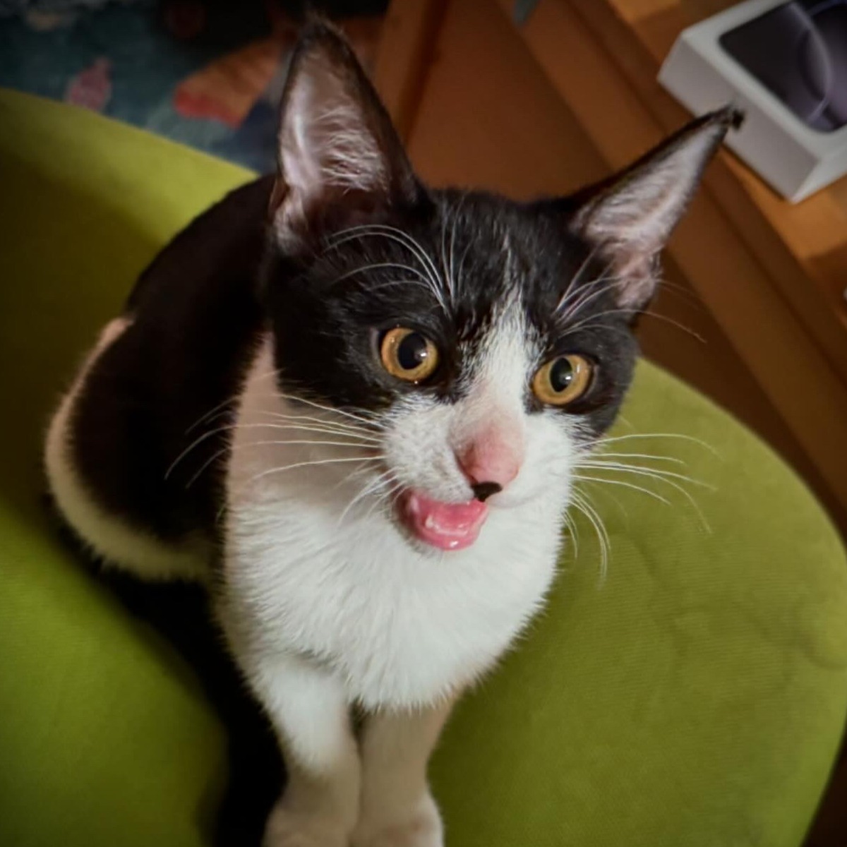 Despite everything, she is bursting with love and affection. She purrs loudly the moment you're near, eagerly soaks up cuddles, and curiously explores her surroundings.