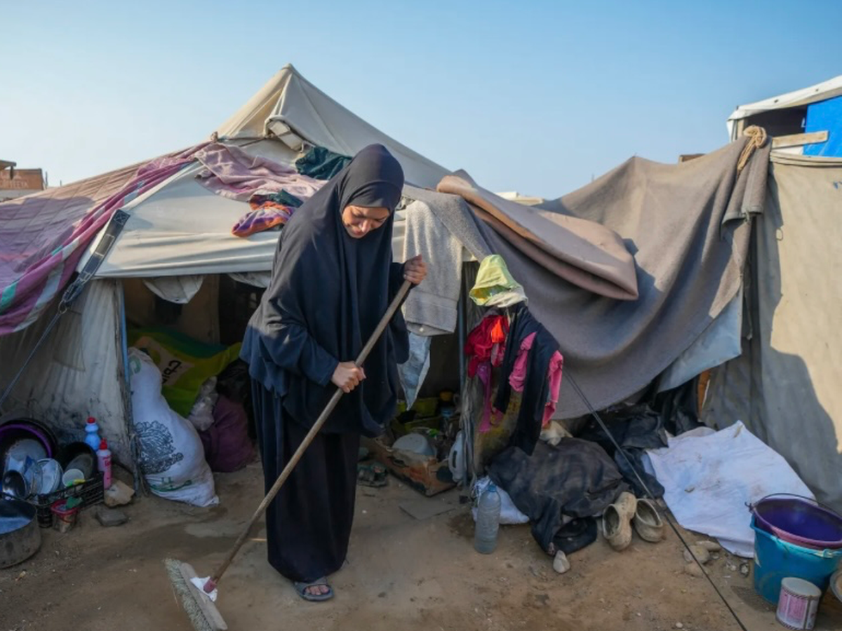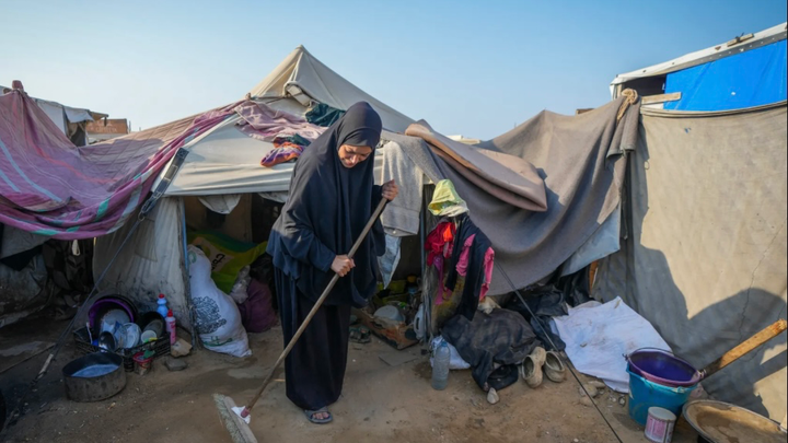 She is living in a tent in northern Gaza, with no electricity, no running water, and no basic necessities. Every night, she sits in complete darkness, unable to read her books or study for her exams. Yet, despite everything, she refuses to give up.