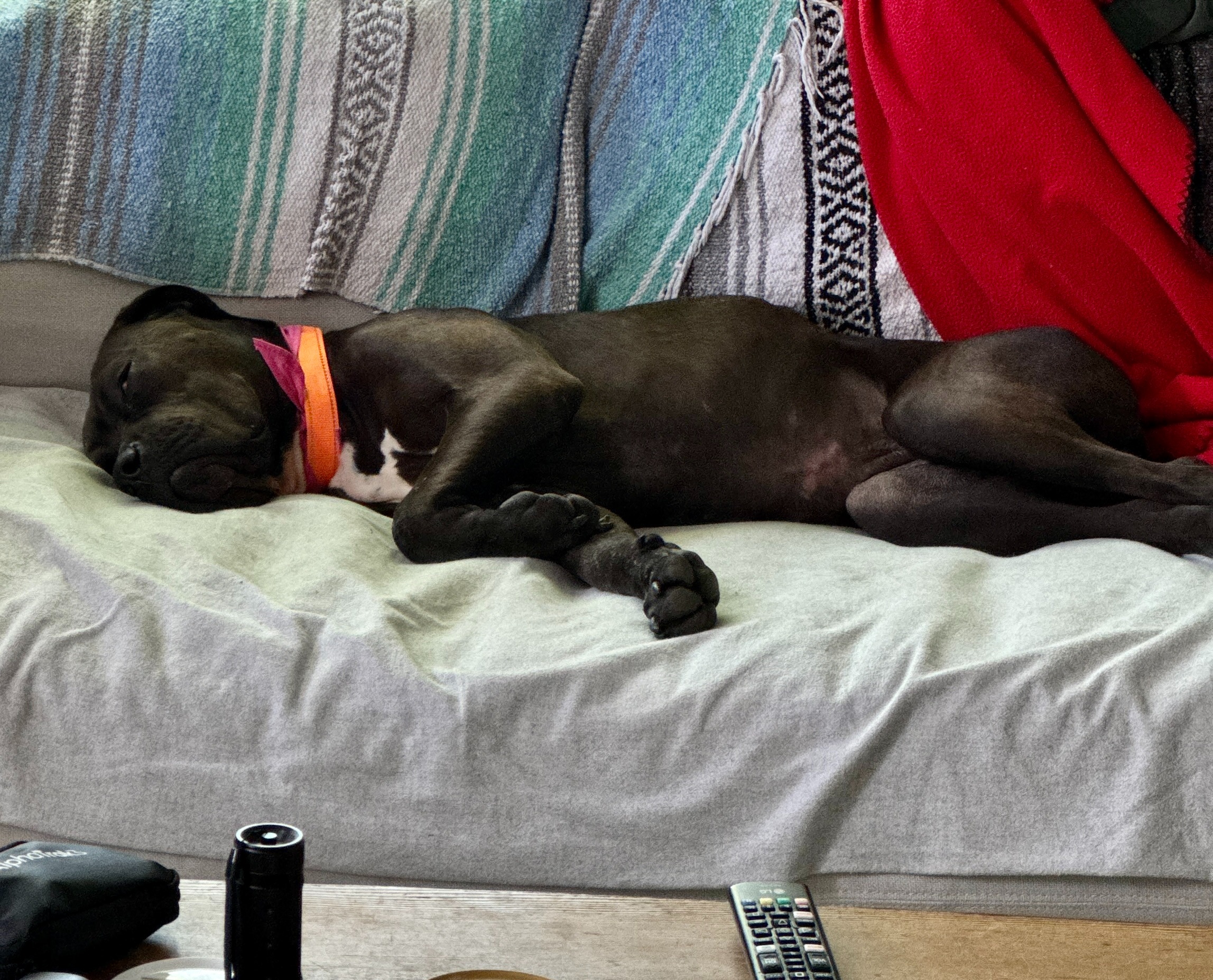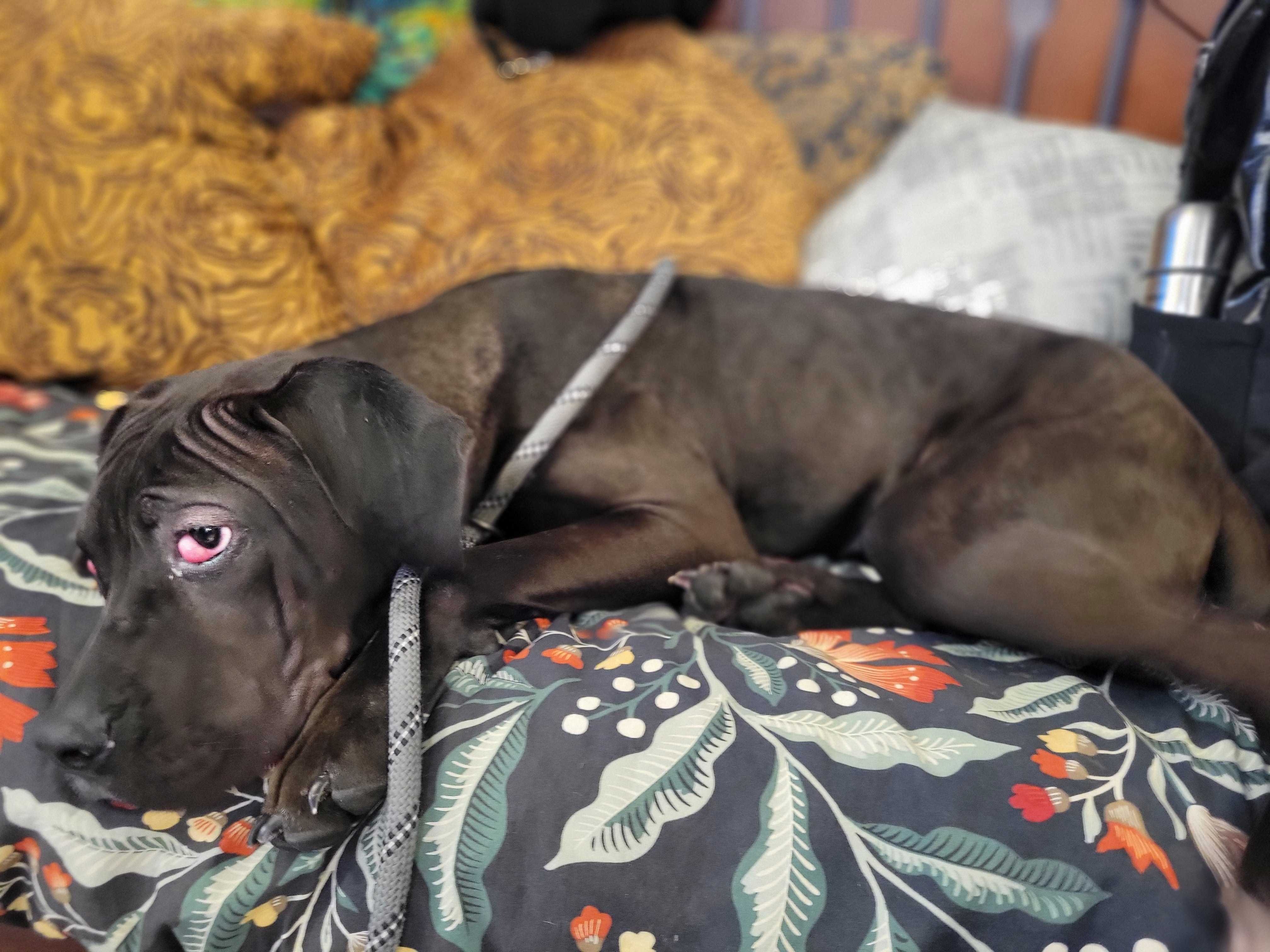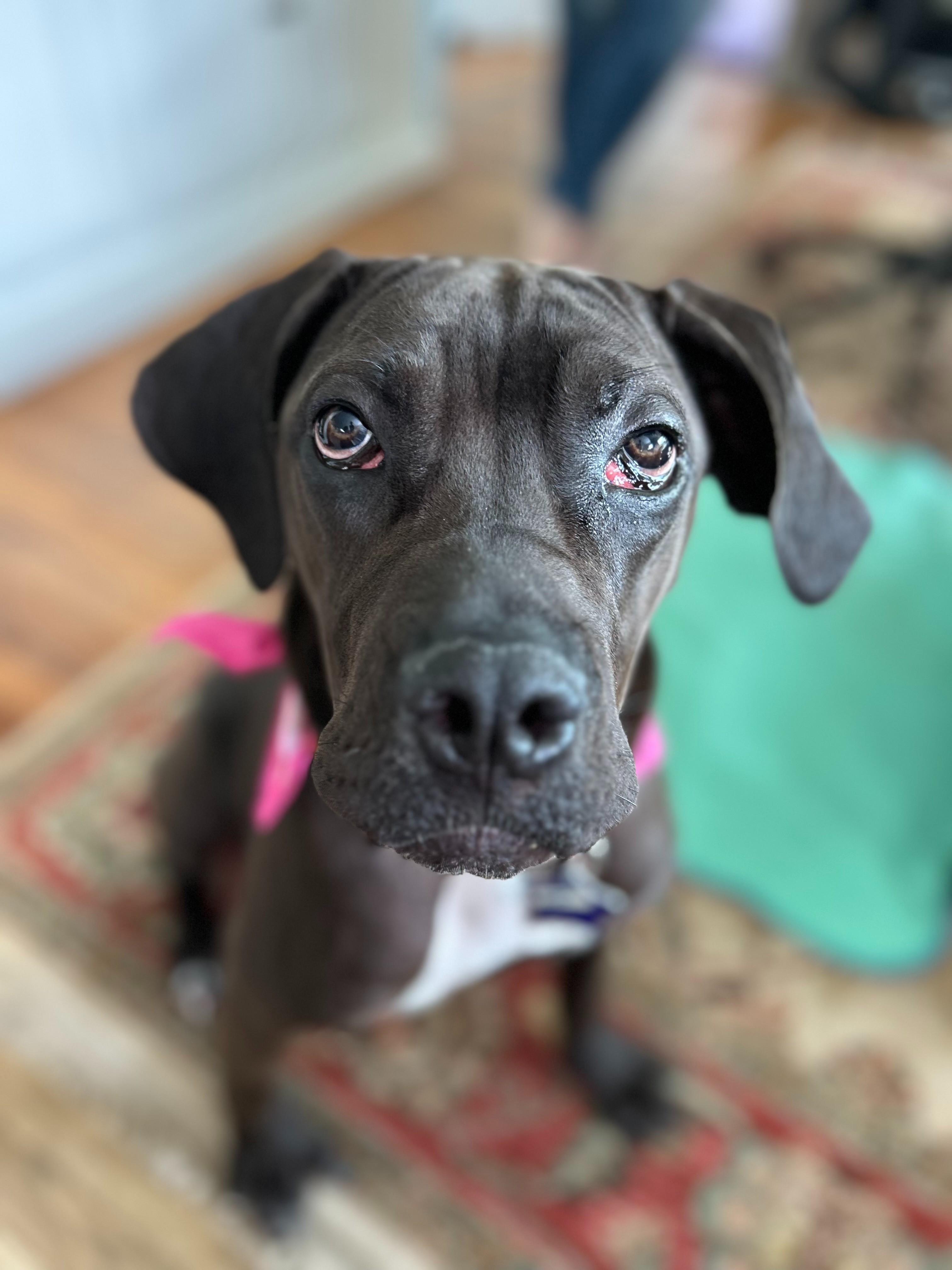 Meet Rocket Dog "Mabel". She came to us from Fresno Animal Center in February 2025 as an underweight 36lb puppy with two cherry eyes that needed corrective surgery. After 2 surgeries and a lot of TLC, Mabel is now a 60lb hilarious, sweet girl who loves chewing on bones, playing with canine friends, and cuddling with her favorite people. But several weeks ago, Mabel's wonderful foster mom noticed that she had developed a limp in her back legs. Testing revealed that Mabel has severe hip dysplasia and requires extensive surgery to repair.
