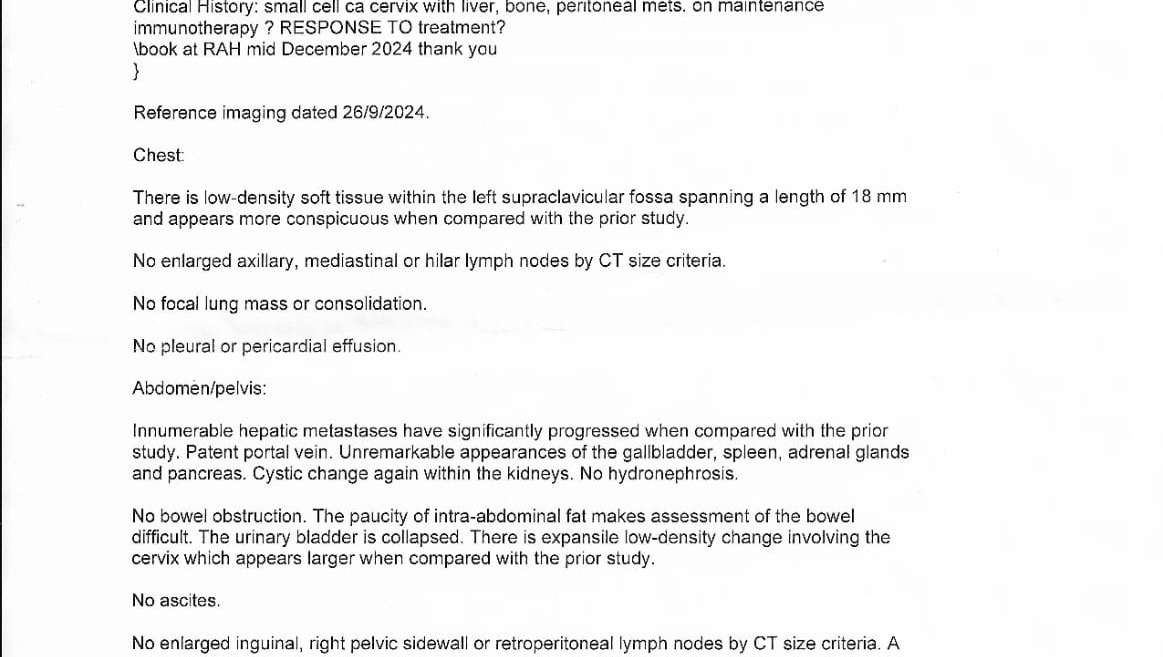 Hello... I'm after my second chemotherapy, it's not easy... but no one promised it would be... the biggest problem is weakness and weight loss... on 28.02 a tomography will be done to confirm whether the chemotherapy is effective or whether other drugs need to be introduced... I'm optimistic because the results of liver tests have improved a lot... on the day of admission to the hospital before the first chemotherapy the results were at the level of 260 units, now after the use of chemotherapy, immunotherapy and additional drugs they have dropped to 40 units... and it's all thanks to your help... thank you for your help