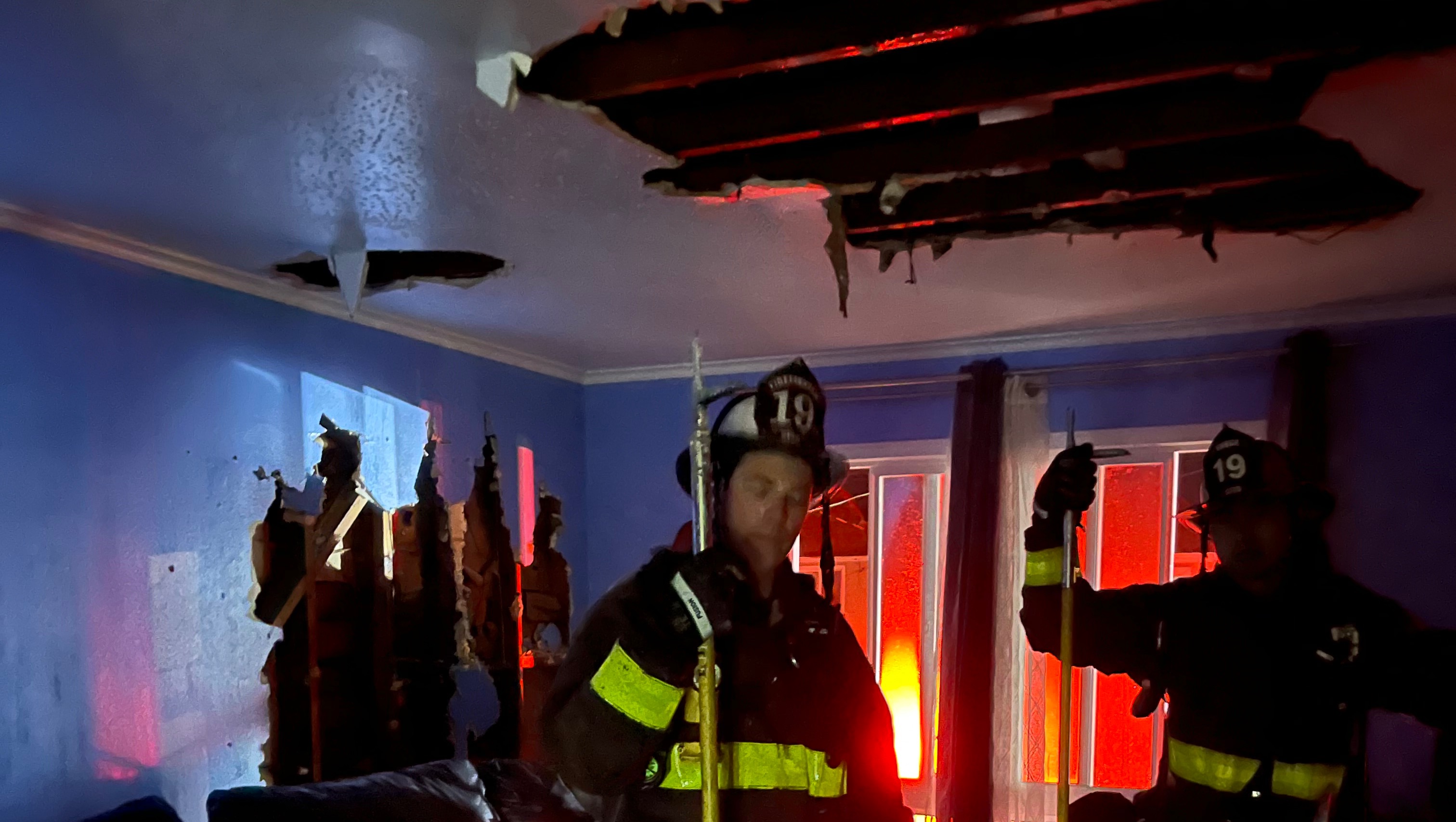 Joann was awoken from her sleep to a loud sound coming from downstairs and thought the house was being broken into. Her husband went to check and found that instead a fire had broken out.