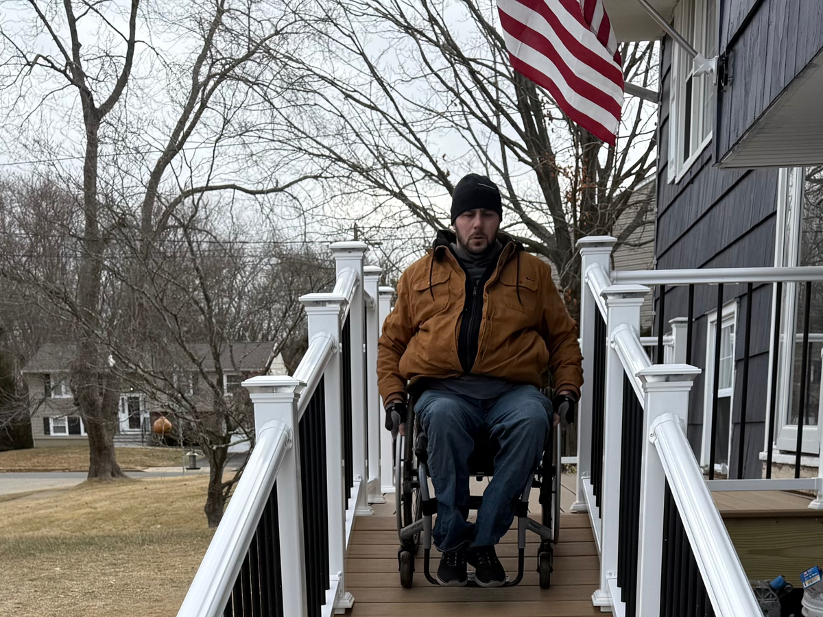 But every day, just to get to work and live his life, he is forced to drag himself up and down the stairs in our home. It’s exhausting, unsafe, and heartbreaking to watch.