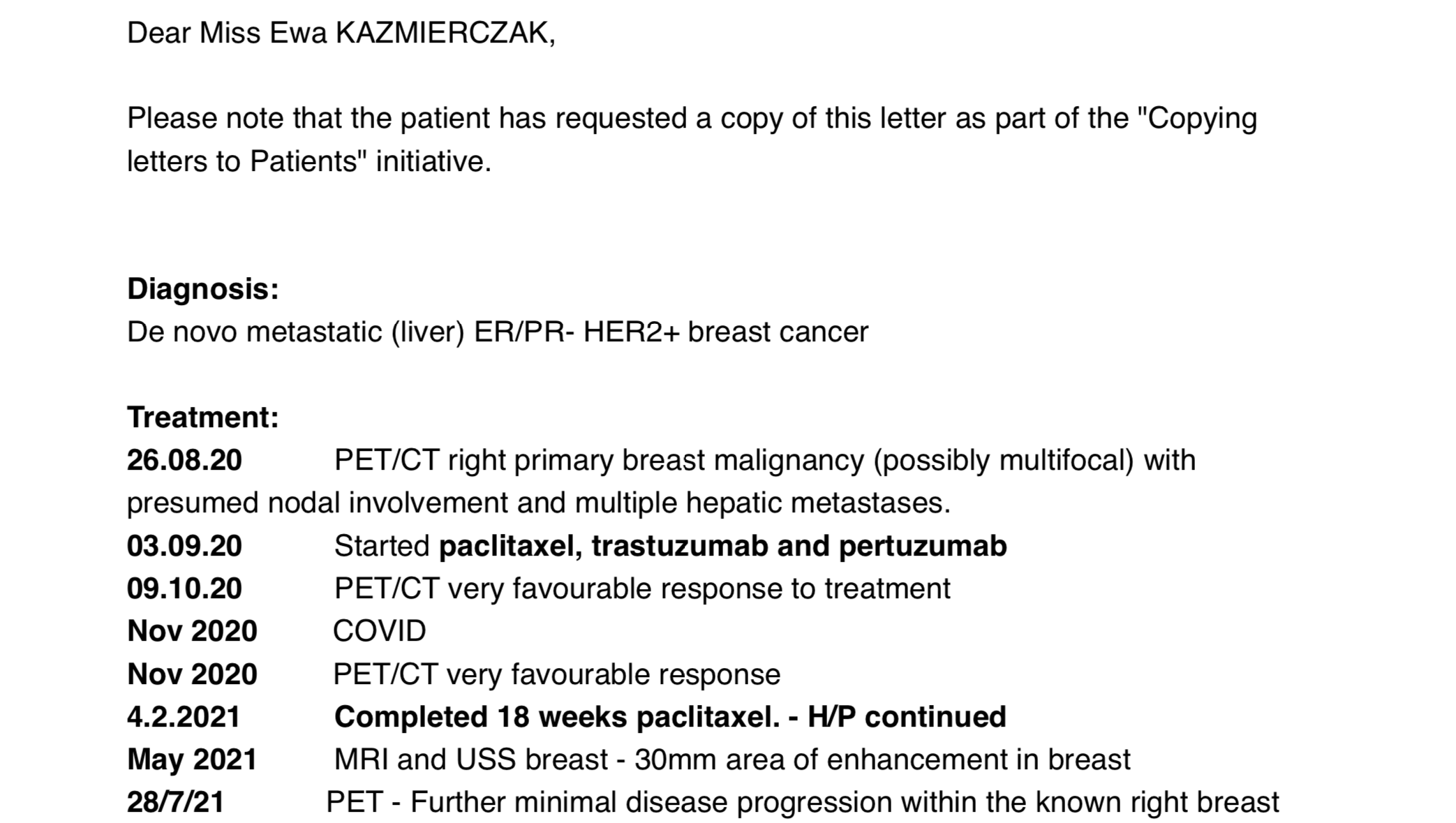 My name is Ewa, and for the last five and a half years I have been living with stage 4 breast cancer.