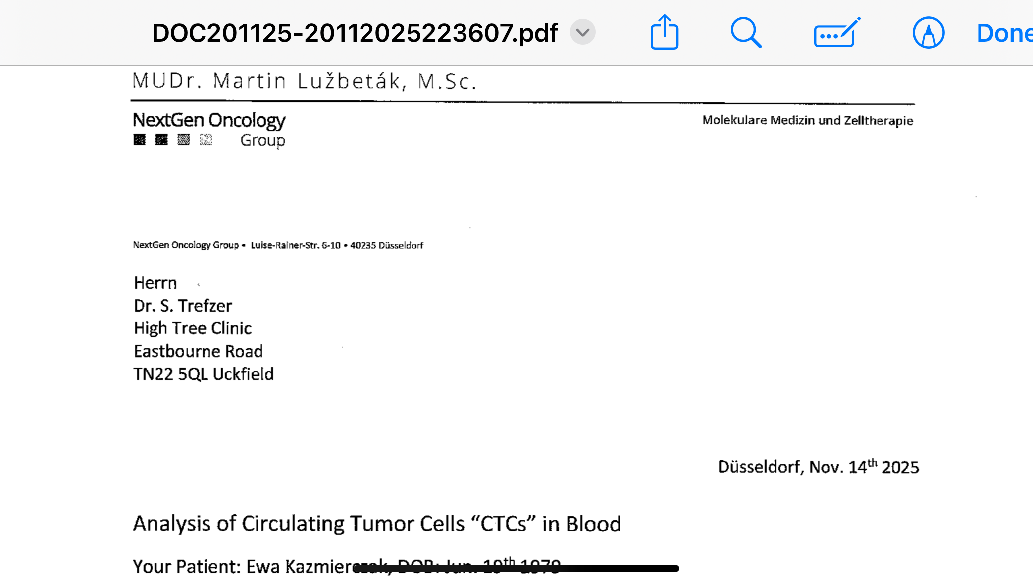 I am also under the care of Dr. Siegfried Trefzer, an experienced functional medicine physician in the UK, who will administer the intravenous therapies that scored highest in my personalised testing.