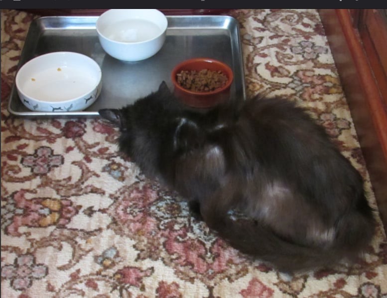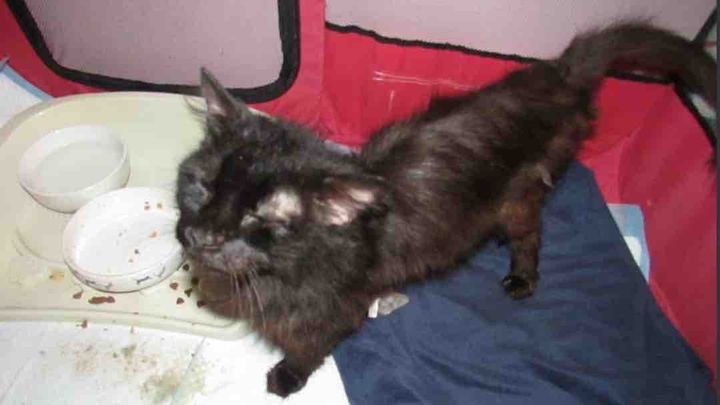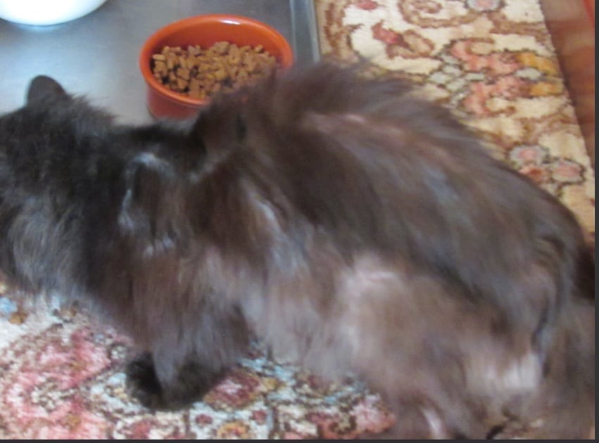 We took in Tara yesterday from a multi at household. We were told she had a skin condition but when she arrived we could see she was also very skinny and absolutely ravenous. She ate two pouches of wet food and a large bowl of cat biscuits straight away. She has eaten everything put in front of her.