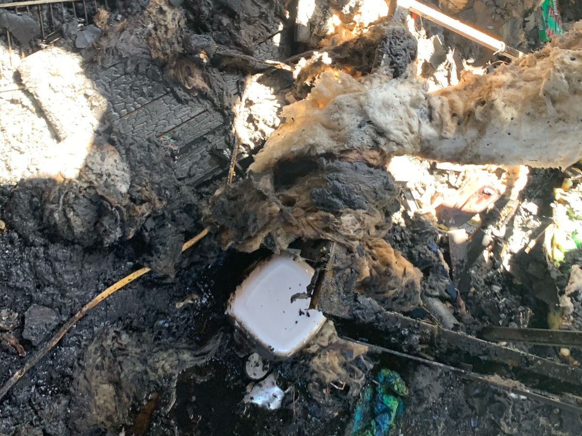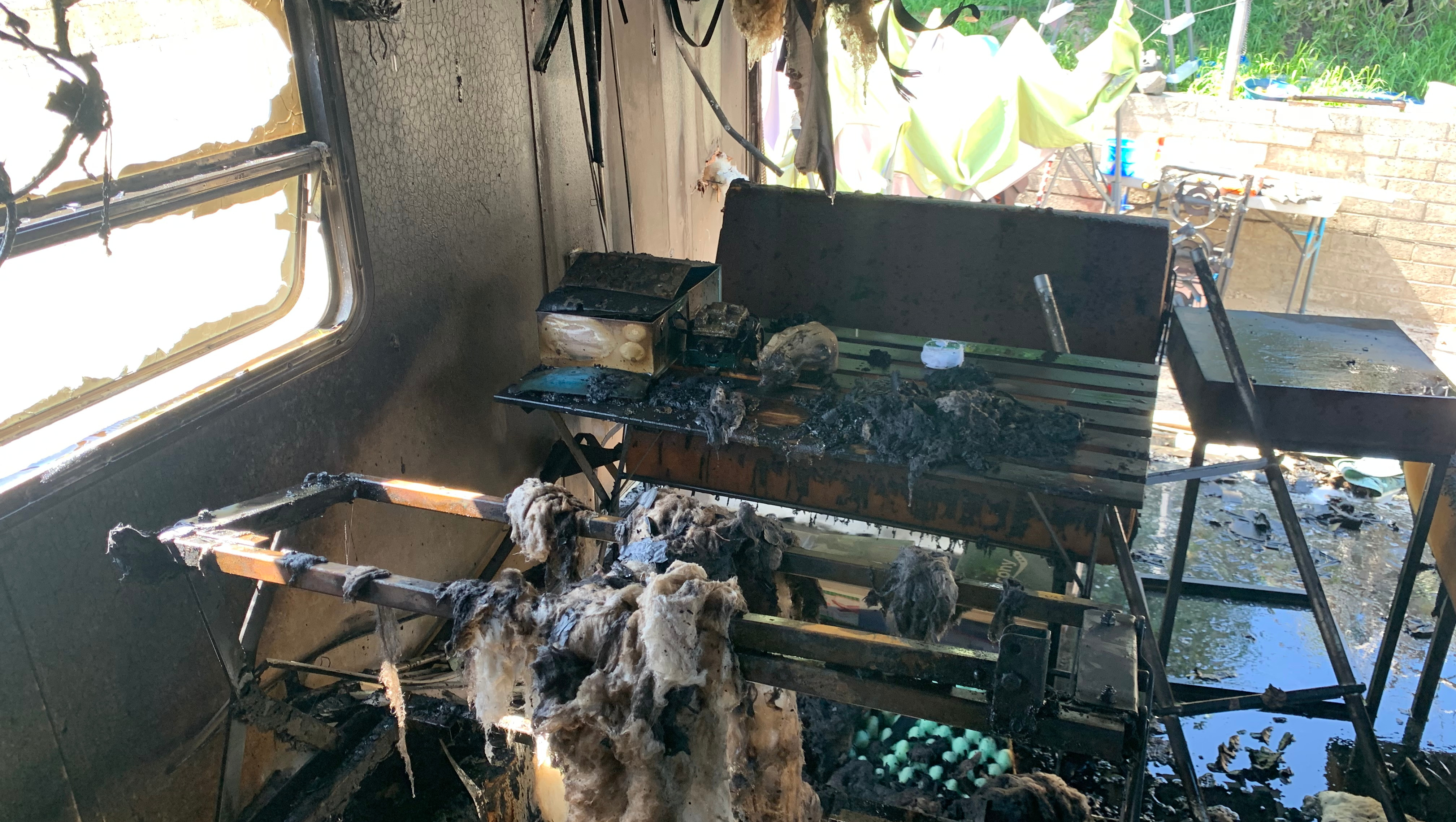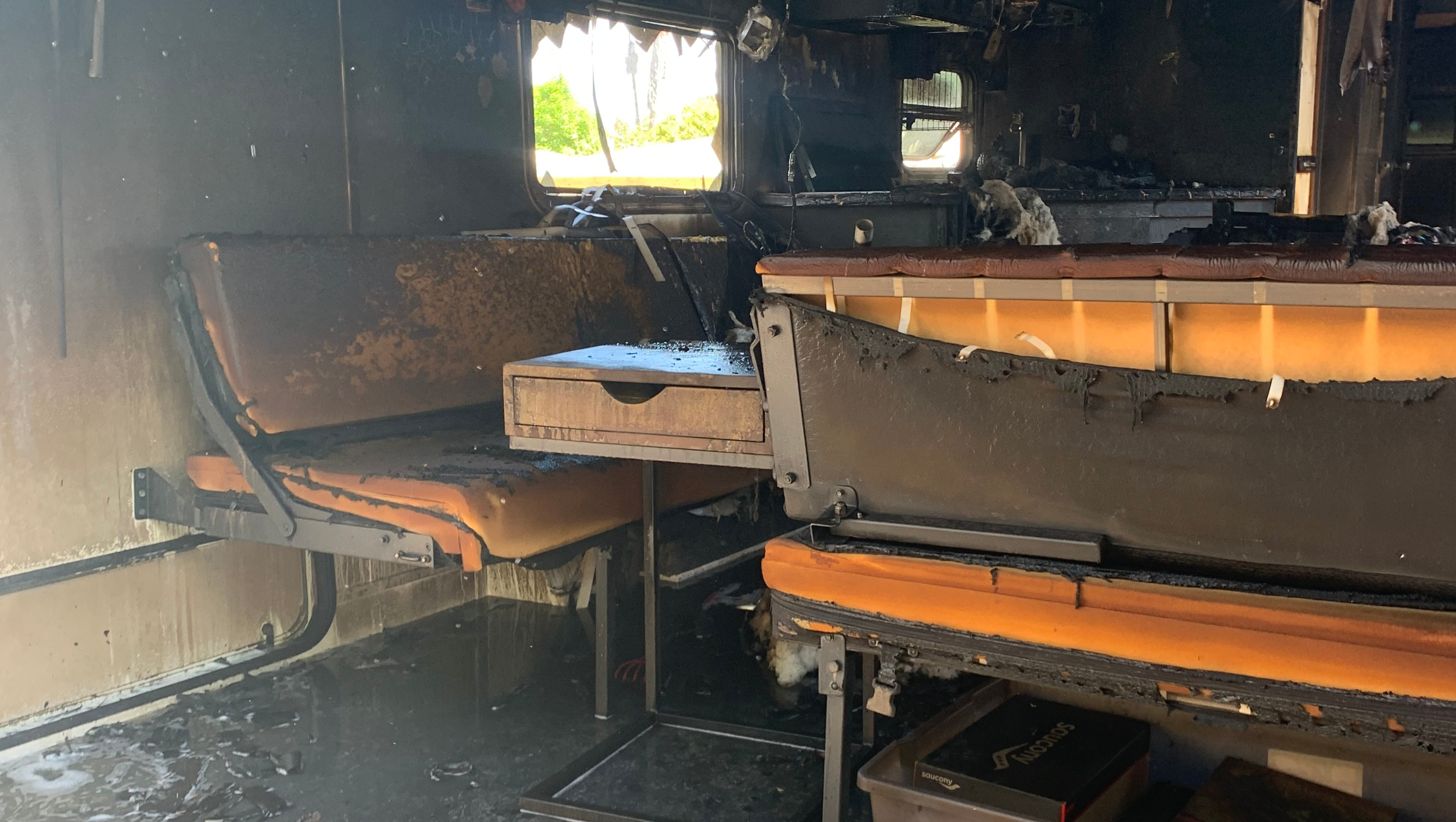 half moved into the trailer when it burst into flames.