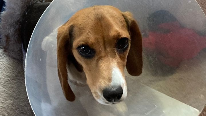 Sassy ran away chasing a critter on Tuesday, and the beagle nose took over. Despite the efforts of friends and family, she just kept on going. Three grueling hours later she was hit by a car, leaving her with 2 broken rear legs and a broken pelvis. The driver did not stop.