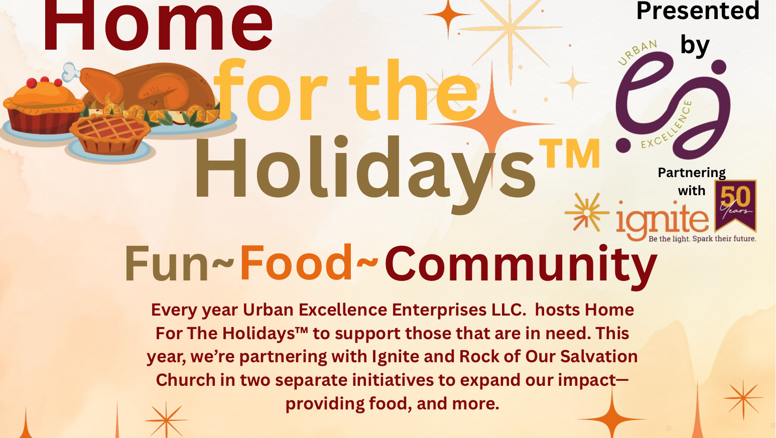 Hello my name is Chef Ora and I am the proud owner of Urban Excellence Enterprises LLC. Each year we make an effort to give back in an initiative event called Home For The Holidays™. We aim to encourage and uplift those in need.