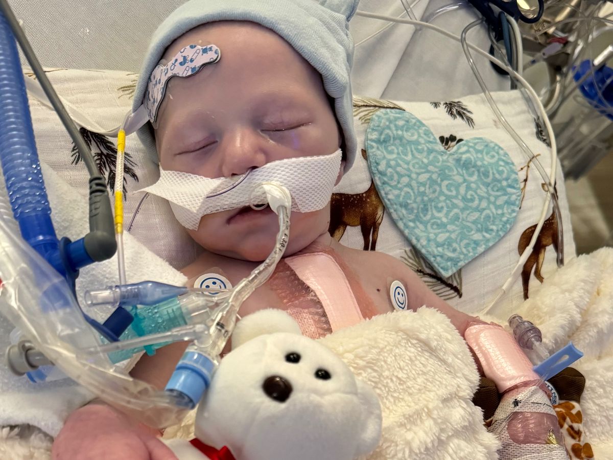 He underwent his first heart surgery at 5 days old & is still in need of two other surgeries before his heart will be fully repaired.