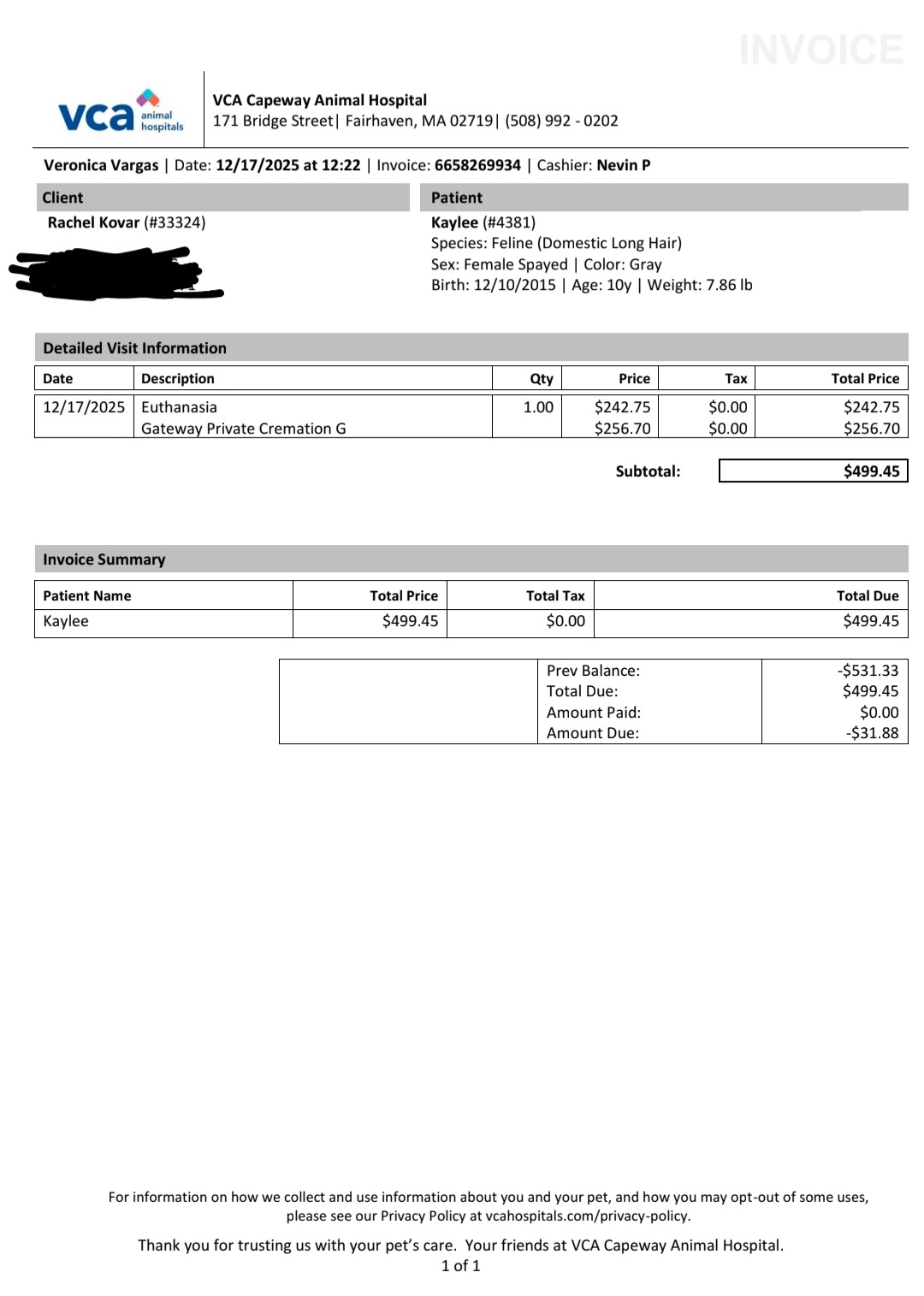 For Kaylee, they said the best thing to do was take some blood and run some labs. Her labs came back showing that her liver/kidney levels are high.