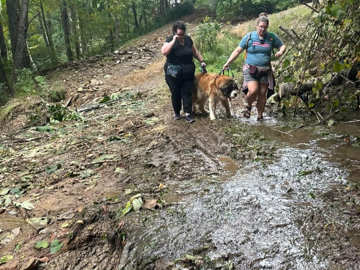 My name is Stacey Storm. I live in the middle of Illinois, safe from hurricanes, flood waters and mudslides. I can drive to the grocery store to get food, turn on my tap to get water, flush my toilet, and sleep in the comfort of my home with electricity. Unfortunately, my dear friend Kim Kennedy who I have known for over 37 years, from Champaign, IL, lives in Asheville, NC with her family. Her home is up on the mountain. Access to her home was washed away along with many other roads in Asheville. She had to walk up the mountain to rescue her daughter and their fur babies. The road to her home is covered in trees tangled in power lines, deep crevasses and mud, lots of mud from all the flood waters. Rescuing her daughter was an incredible feat given all the obstacles they encountered going up and coming back down the mountain.