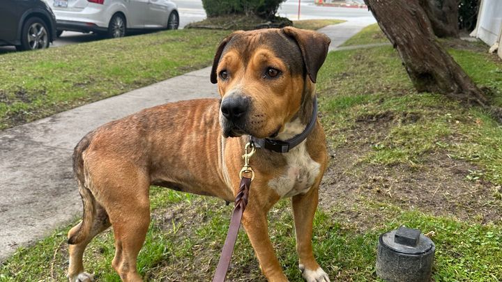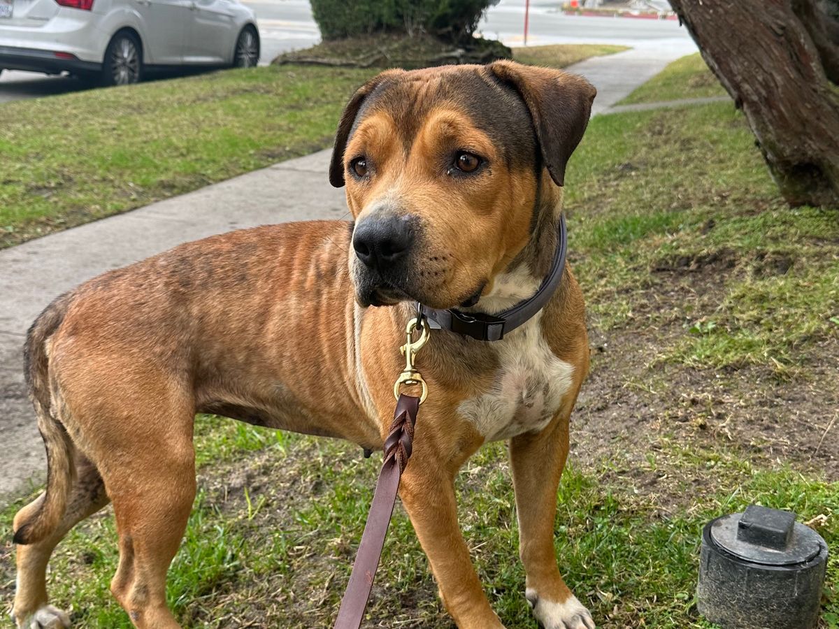 We picked up Lady from the street corner by Anderson Elementary School in Compton where she had been living for at least 2 weeks. Neighbors were kind enough to bring her food and water but animal control wasn’t willing to do anything. We found her post on Neighbors and decided to pick her up. After 2 nights, lots of food, and some patience we were finally able to get her on a leash and bring her home.