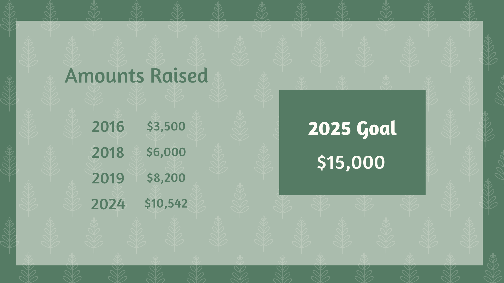 We ran this fundraiser in 2016, 2018, 2019, and 2024 raising $3,500, $6,000, $8,200, and $10,542 respectively. We’re excited to focus our efforts on running this fundraiser again and setting an even more ambitious goal: $15,000!
