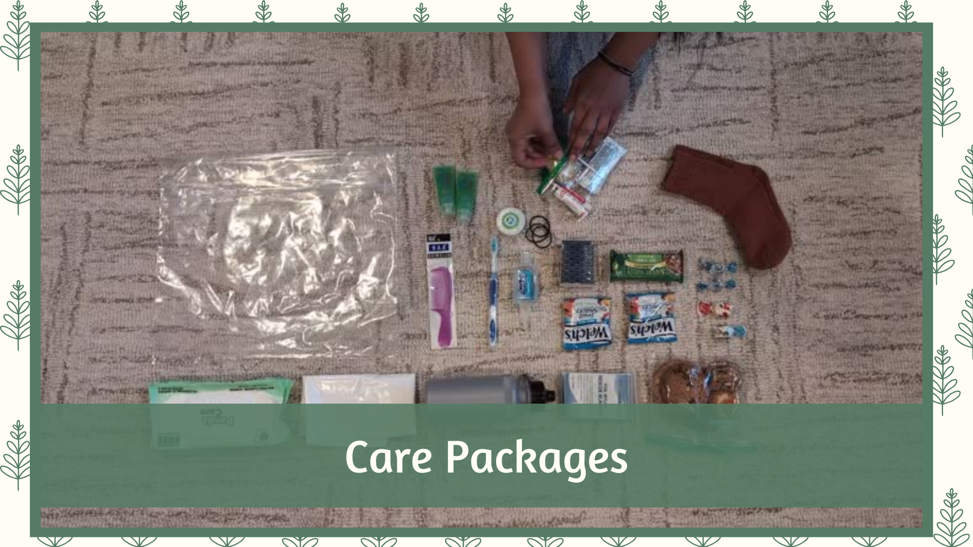 We will also be creating care packages to hand out to individuals facing homelessness. The care packages will consist of items that not everyone has the luxury of using on a daily basis, such as a toothbrush and toothpaste, hand sanitizer, bandages, q-tips, floss, lotion, feminine hygiene products, and more. For reference, last year, we created 215 care packages with an average cost of $17.43 per bag.