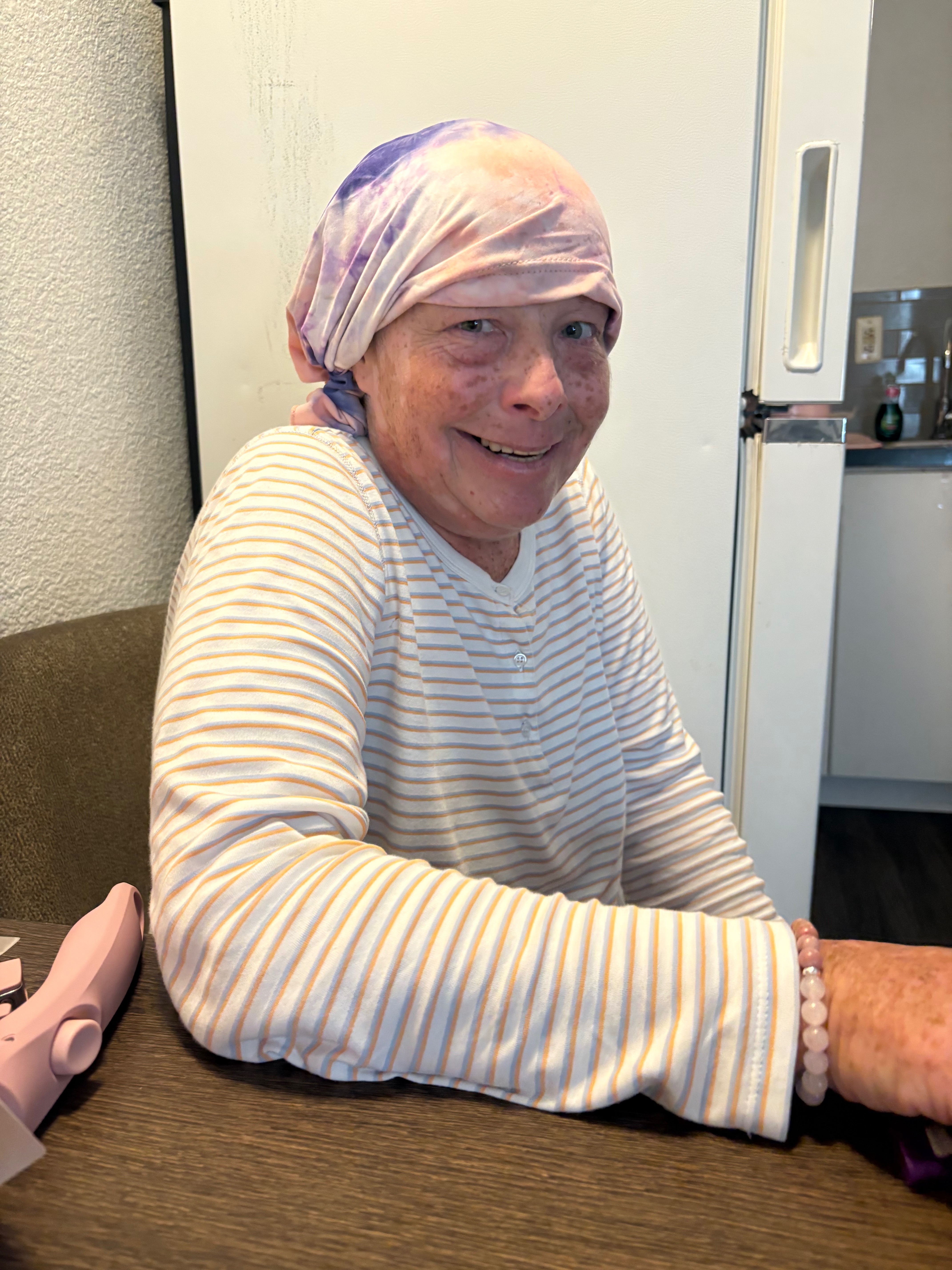 Thanks to so many kind and generous people we’ve had Miss Kim in an extended stay hotel since July. She’s also been able to attend all of her chemotherapy appointments! She now has a 6 month break from chemo.