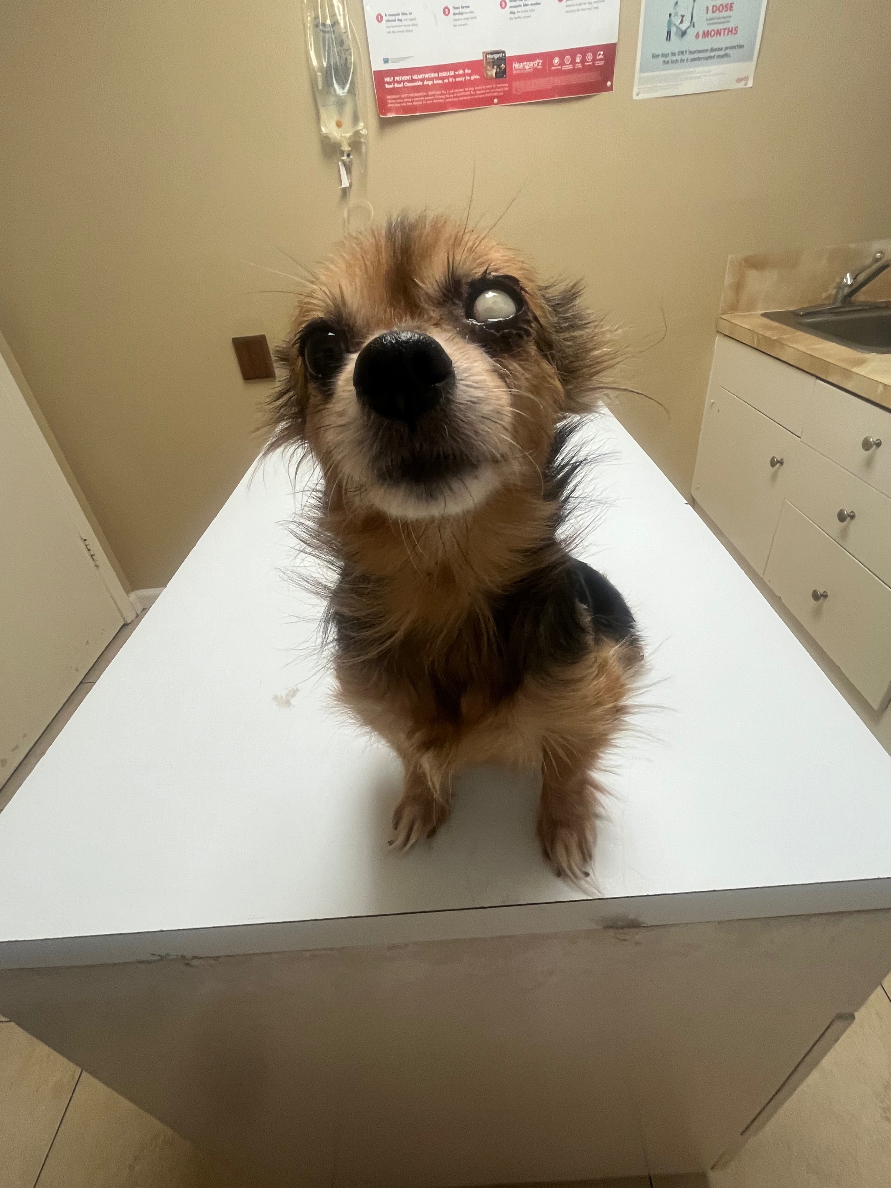 Not just that. Something happened to her eye that’s made her hide away from people and she seems sad, I don’t understand why or what it is and how I can help. I don’t have the money to get my chuleta checked at the vet and to be told what’s needed or wrong. So please, anything could help my chule. Thank you, God bless you.❤️
