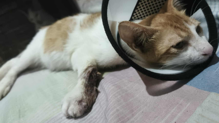 Meet Ichi, a brave stray cat from Manila, Philippines. Ichi’s life took a tragic turn when he was hit by a vehicle and left on the streets with a severely broken front leg. With no one to care for him, the wound became dangerously infected.