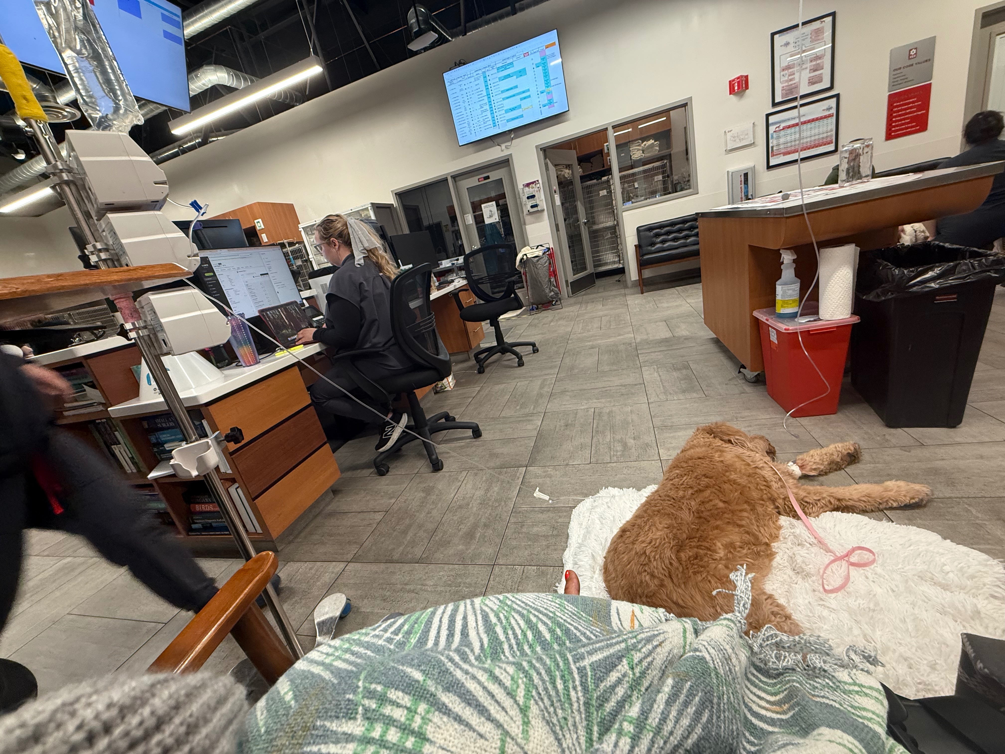 After 2 vets trips, a night in the hospital & $12k (thus far) they have diagnosed him w/Lepto (which he is vaccinated for annually).