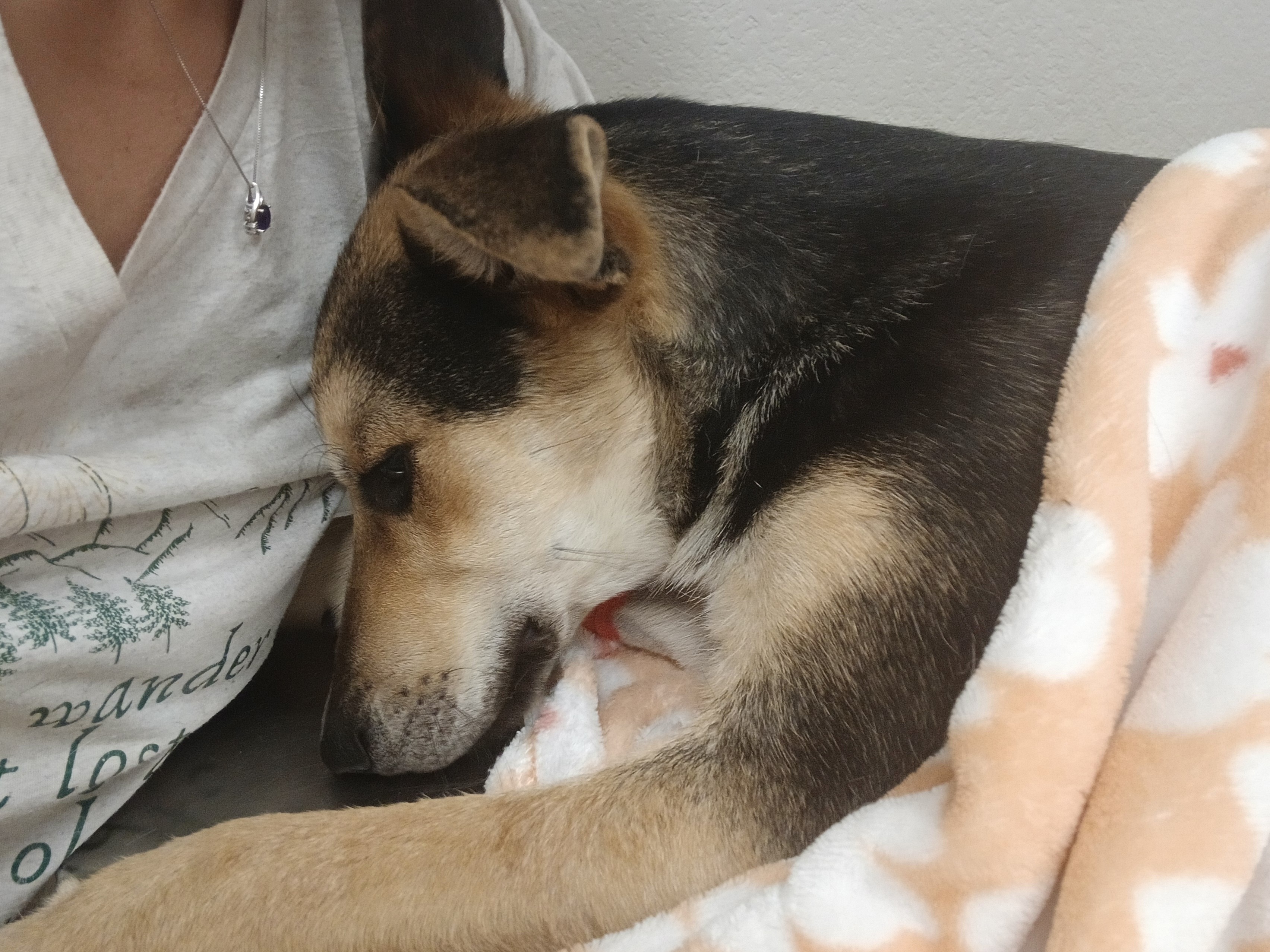 I am still needing assistance in paying this vet bill back to an amazing person who stood up and was there for us in Rocky's desperate time of need. The bills for everything are approximately $2,200. However, that is not including the care that I'm still needing to give him that I am unable to do on my own. I still need help with Pedialyte, puppy pads or nursing pads for the bed, laundry soap (I've gone through almost a whole thing of laundry soap in one day since he's been home), and the wet canned food that I'm trying to give him a little bit of throughout the day that he doesn't eat.