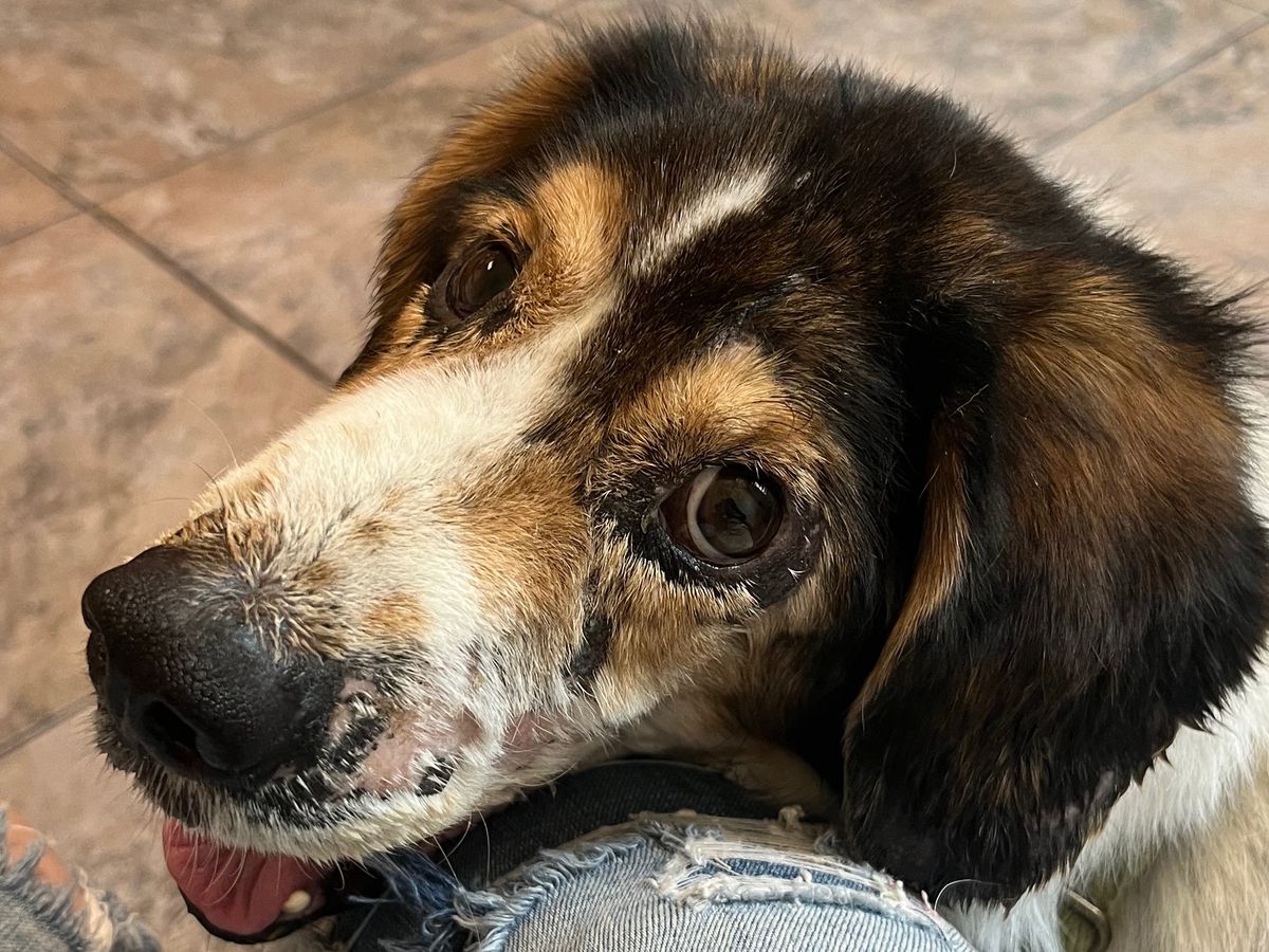 This dog was severely neglected and abused. He is now about 70% better as seen in the cover photo and we ask anyone who wants to donate to his initial treatment that saved his life and his care moving forward to please do so and share if you can! Thank you for your consideration.