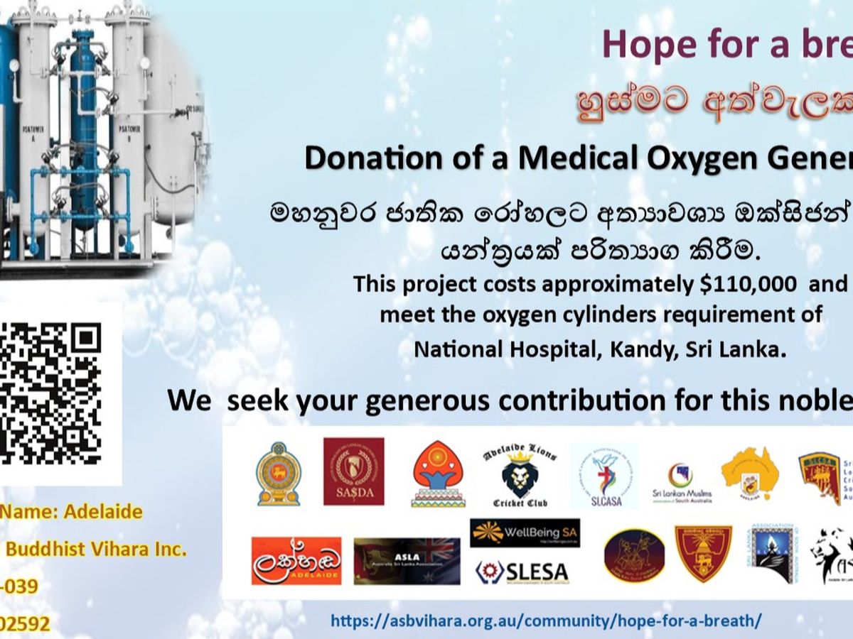 A humanitarian initiative organized by Adelaide Sri Lanka Buddhist Vihara and Sri Lankan Community Organisations in South Australia