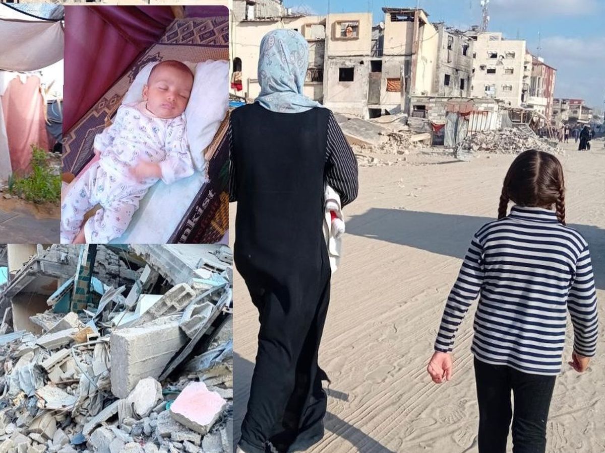 I am Nahed from Gaza. I am 31 years old. I have four children. The last child I gave birth to during the war is no more than two months old. I live in the city of Gaza, Al-Tuffah. I was displaced from northern Gaza on October 15, only about a week after the start of the aggression. I lost my home due to the bombing and it was destroyed.