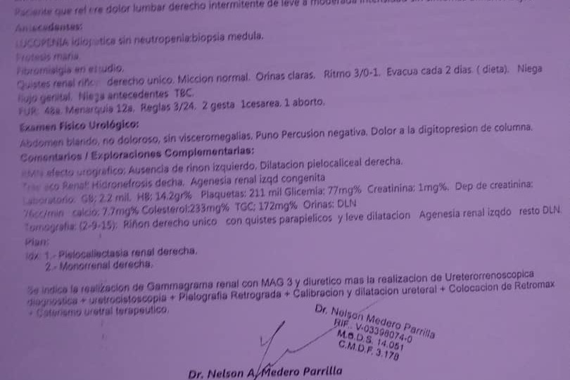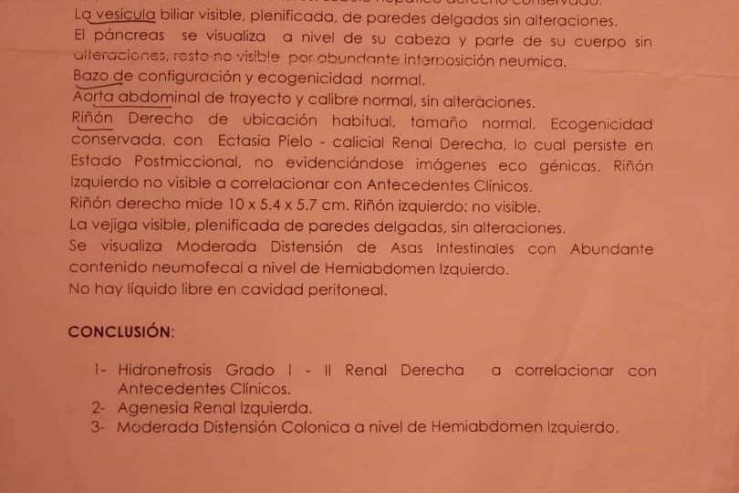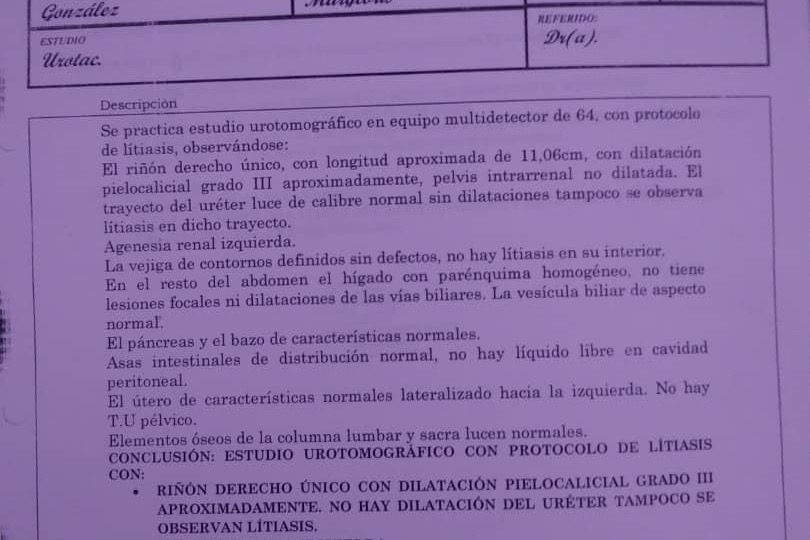 Y me diagnosticaron quistes parapielicos derechos y pielocaliectasia derecha.