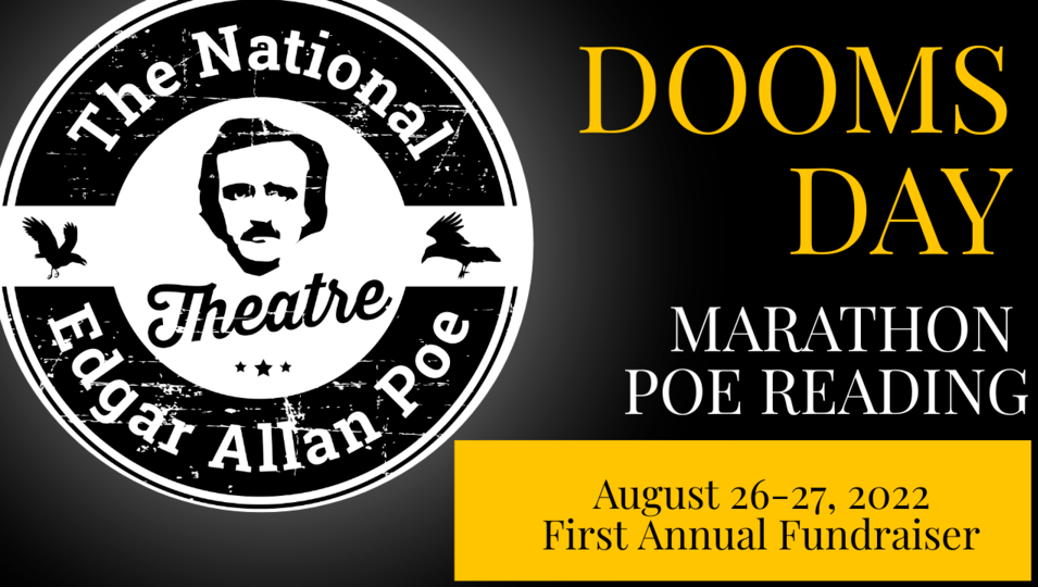 So forget James Joyce and Bloomsday! It's time for Edgar Allan Poe and Doomsday. Starting at 7 PM on August 26, and going on for 24 straight hours, you'll be able to watch a live stream of the first annual marathon reading of the works of Edgar Allan Poe -- all to benefit The National Edgar Allan Poe Theatre's first LIVE production! (www.poetheatre.org).