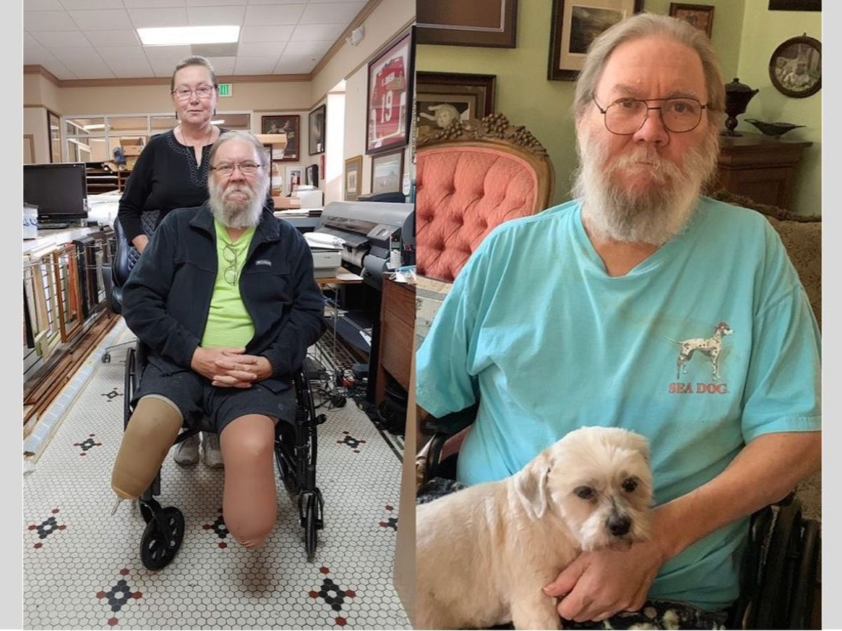 Double amputee Mark Schultz of Lark Photo & Framing is learning to walk on his own again for the second time.