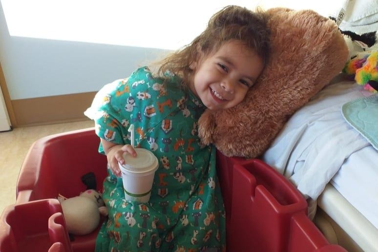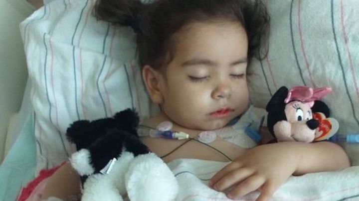 Me llamo Mía Sofía y tengo 2 años de edad. Inicié el año enfermita con temperaturas muy altas y los doctores me dieron mucha medicina pero no funcionó. Fui internada en un hospital de Tijuana y a los dos días los doctores les dijeron a mis papis que ya no podían hacer nada por mí. Con mucha dificultad fui trasladada a San Diego al Hospital Rady Children y allí me practicaron varias cirugías porque adquirí una bacteria llamada pseudomona que fue alterando todos mis órganos.