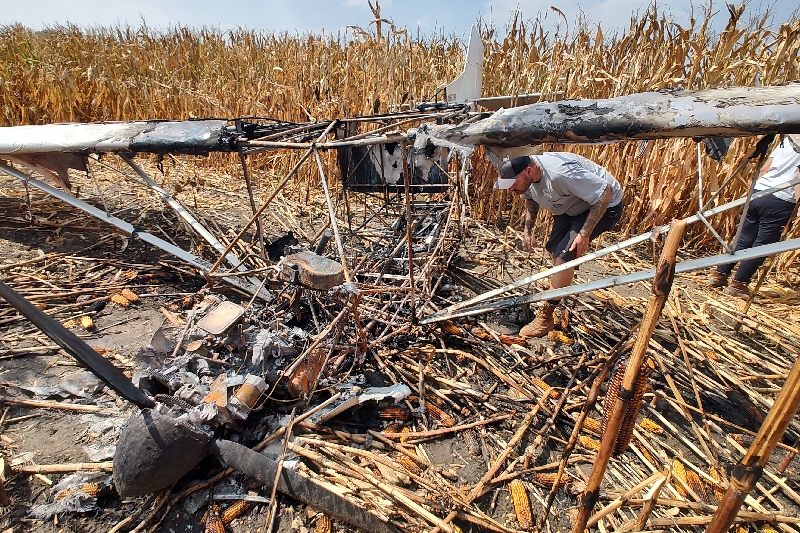 Mike, while on fire, landed his plane in a cornfield about ½ a mile from his hanger.