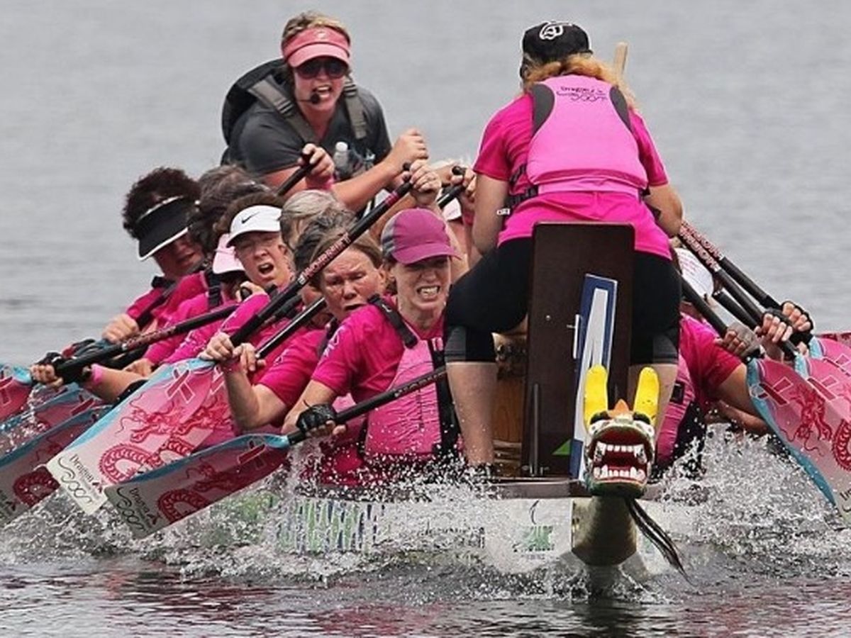 Dragon boating helps this team stay afloat. Paddling helps reduce the swelling of lymphatic fluid (lymphedema) and gives members something physically to look forward to during treatment. The team also functions as a loving support group.
