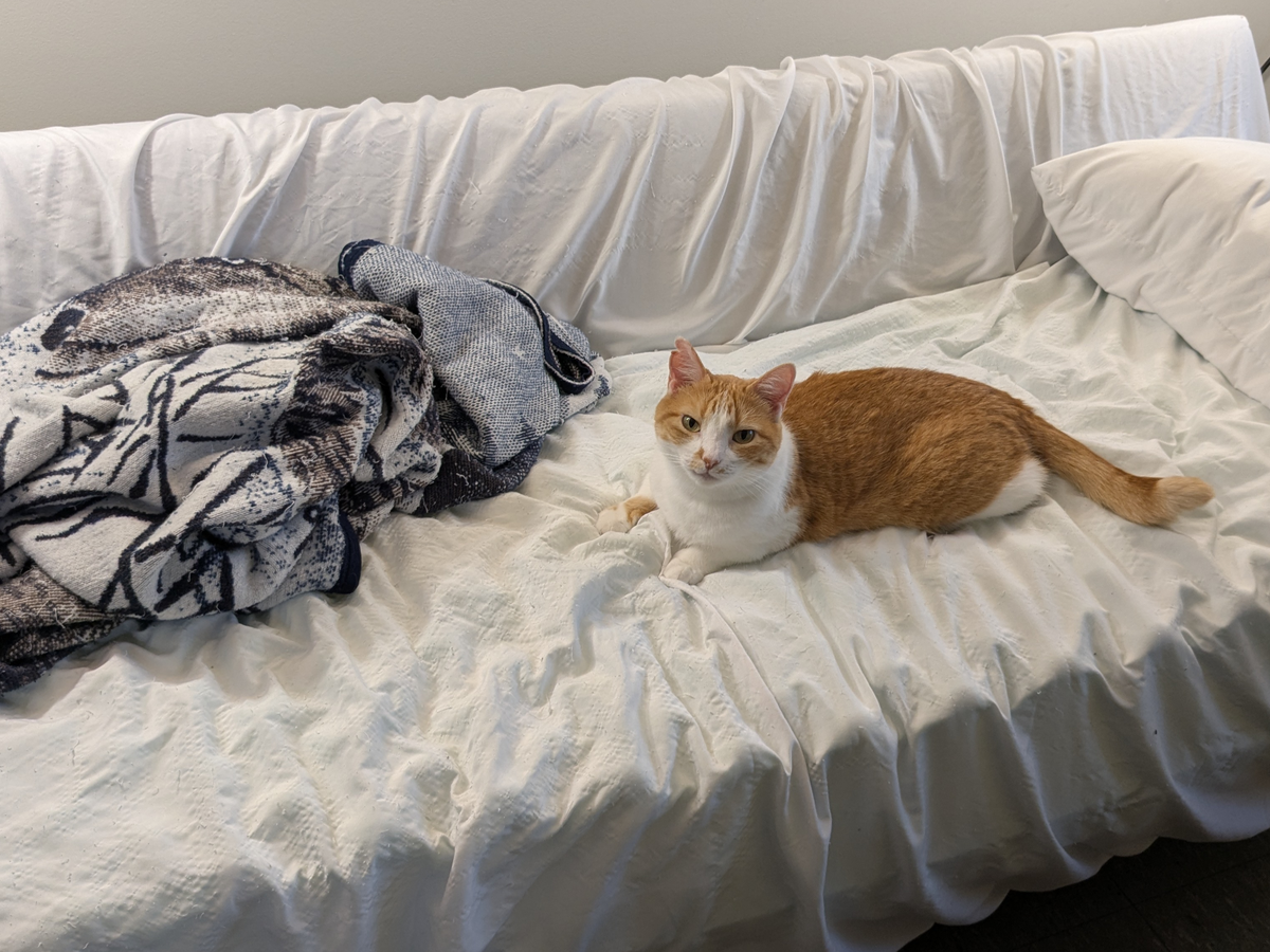 My name is Tyler. I'm 32 years old, I'm disabled, and I live on SSI. For the past two and a half years, I've been sleeping on a cheap futon with memory foam mattress pads stacked on it. You can see it in the header image along with my cat, Zina.