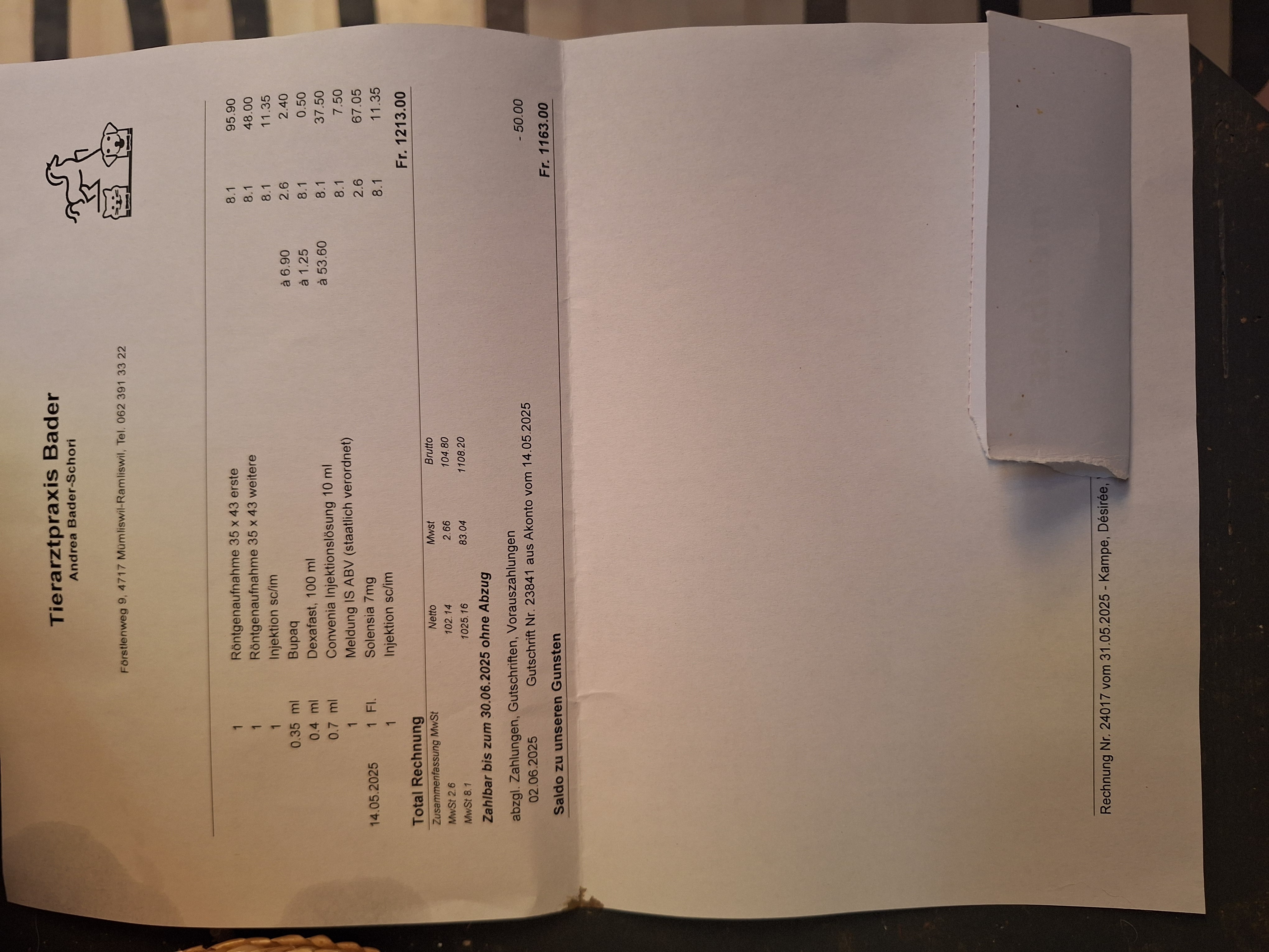 Aufgrund Desis aktuell katastrophalen finanziellen Lage, ist sie momentan leider nicht mehr in der Lage die offene Tierarztrechnung und Feuersterns anstehende Zahnbehandlung zu bezahlen, sowie die ausstehende Hundesteuer von diesem Jahr (die vom letzten zahlt sie derweil in Raten ab).