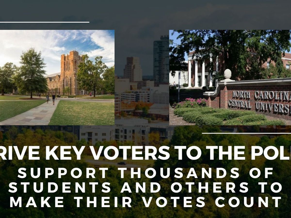 Durham is also home to important, vibrant university communities who vote - both at North Carolina Central University, a historically black university, and at Duke University, with over 30,000 voters across the two campuses.