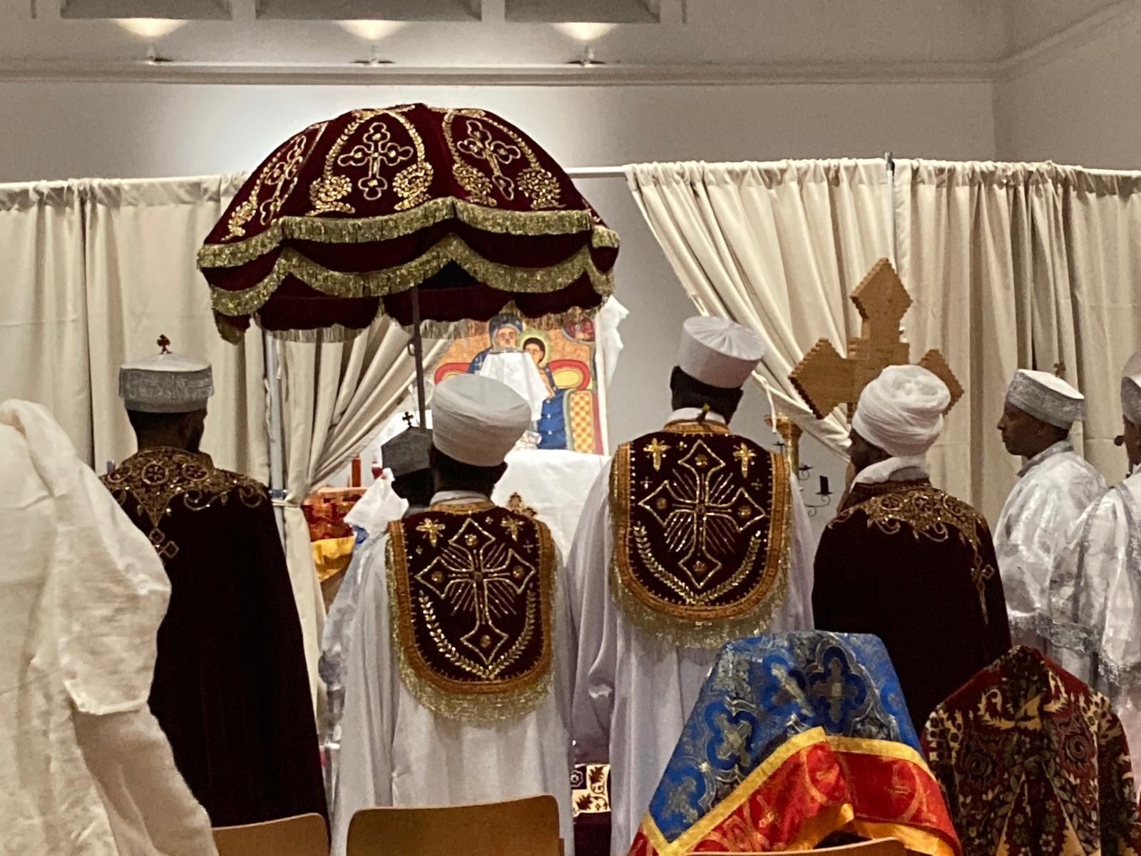 After the earthly departure of His Grace Abune Gorgorios, the Ark of the Covenant was moved to Debre Genet Holy Trinity Church, where it continued to bless the faithful through morning prayers and monthly Mass. Later, under the wise guidance of His Grace Abune Yakob, Archbishop of the UK and Ireland, the ministry moved into a new church building, where Mass is celebrated every Saturday, as well as on monthly and annual feast days.