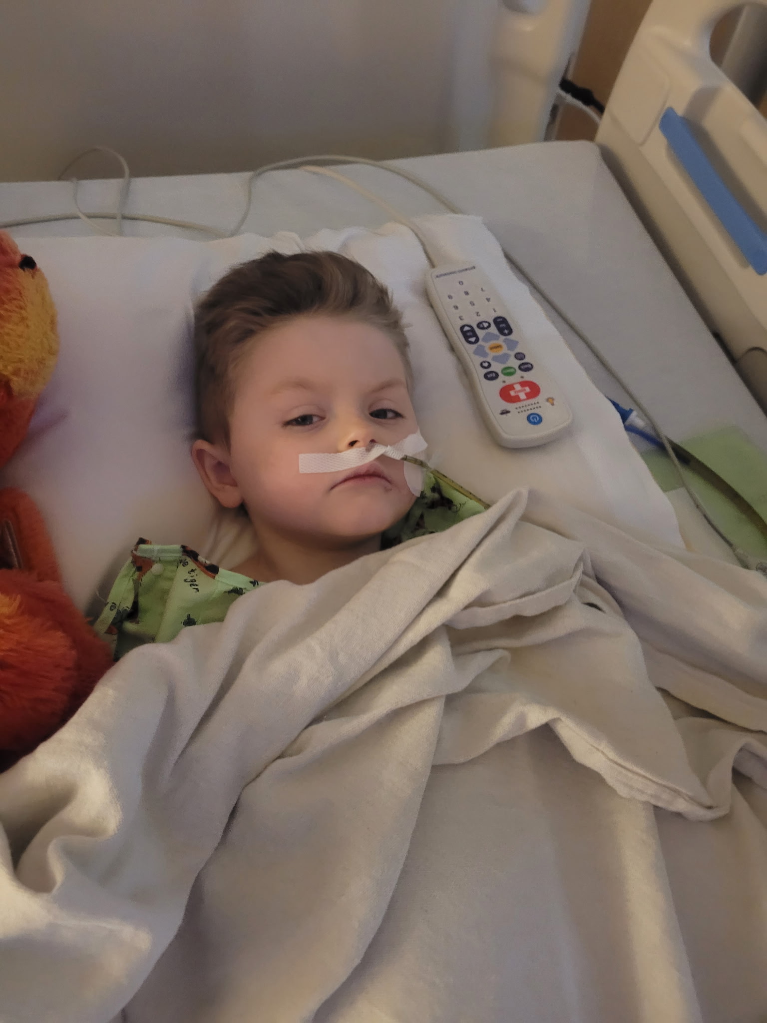 Update....2nd surgery helped a lot. They took the nose tube out and he's starting to get real food. He's had a popsicle and juice. Hopefully his stomach handles it well. Getting better ever DAY